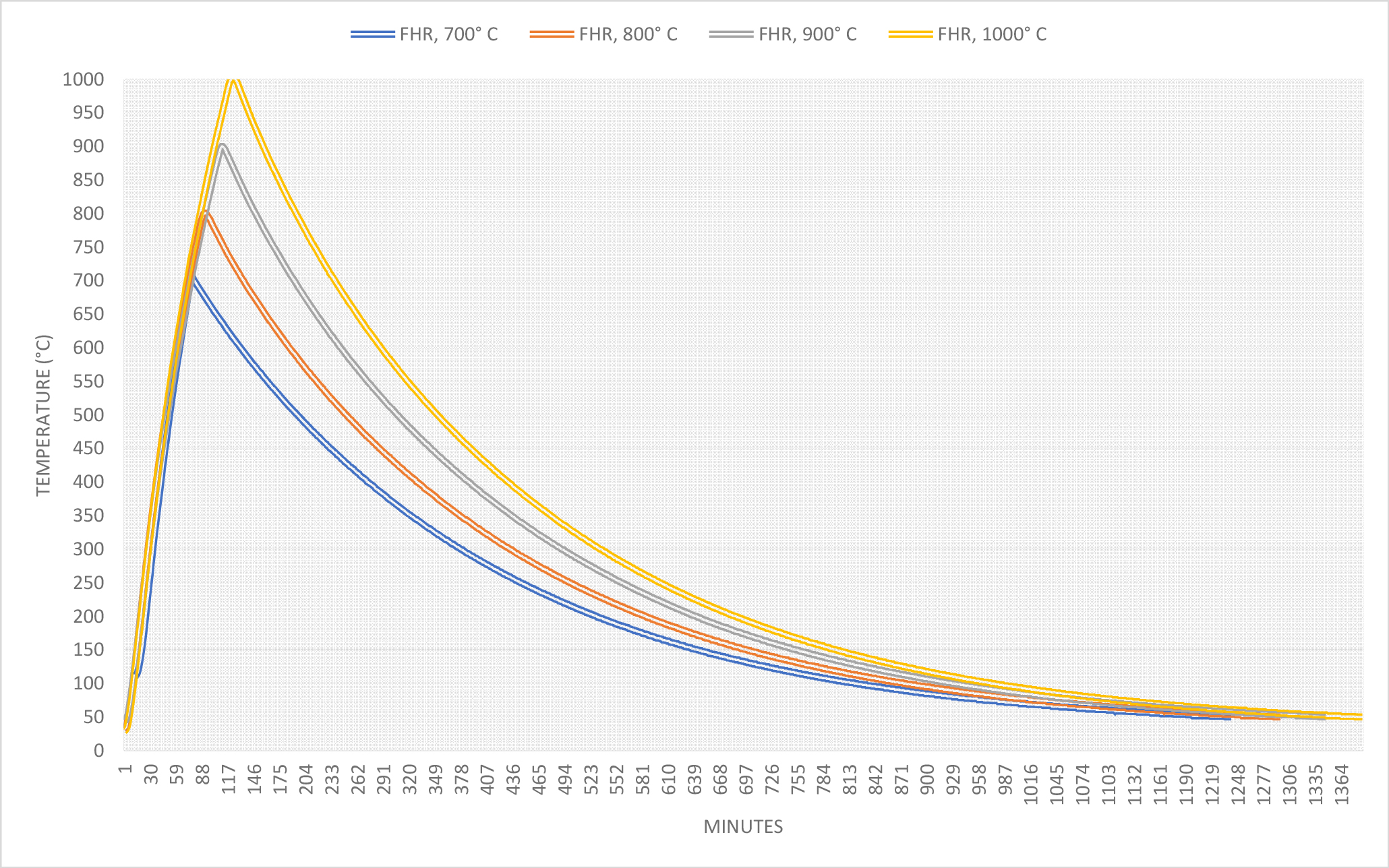 - three hours at 1000° C, in a FHR firing (two hours to reach maximum temperature, see Figure 22a);