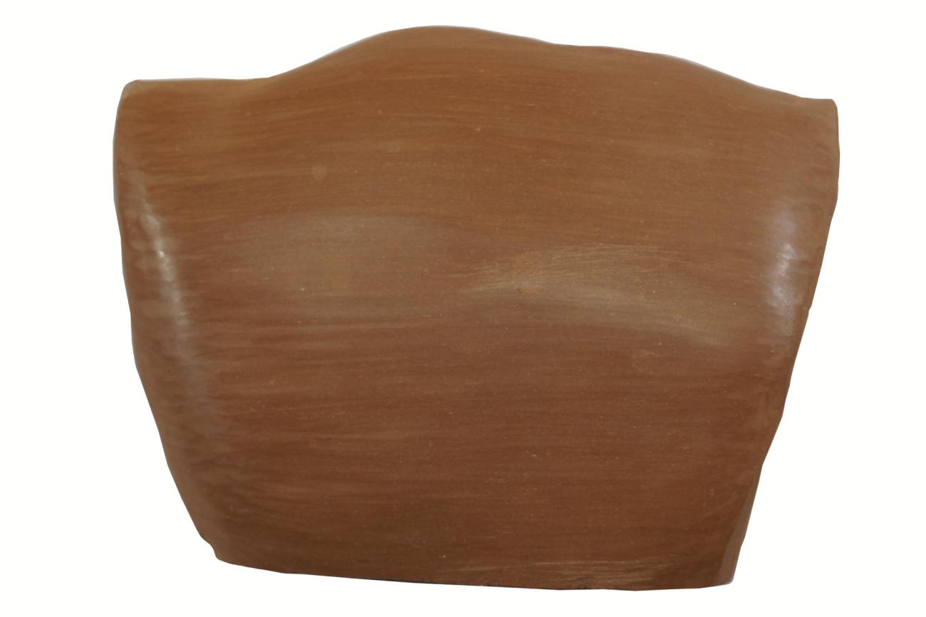 It is clear that not all types of clays are suitable for burnishing. In some cases, clays proved to be quite sticky, making burnishing practically impossible. For comparison, pottery from two different Greek commercial clays were used in the experiment for both the traditional and the laboratory firings. The first type was a semi-fine, plastic clay from Euboea, brown when unfired (See Figure 6a). Petrographic analysis revealed that it contained mostly minerals, such as monocrystalline quartz, mica, and feldspars, and, less frequently, rock fragments, including carbonates (mostly micritic limestone). The second type was a Cretan clay that appeared fatty, grey when unfired, of medium coarseness (See Figure 6b). It was dominated by monocrystalline quartz, mica, and feldspars, as well as rock fragments, including quartz-mica schist, strained quartz, and carbonates (micritic and holocrystalline limestone).