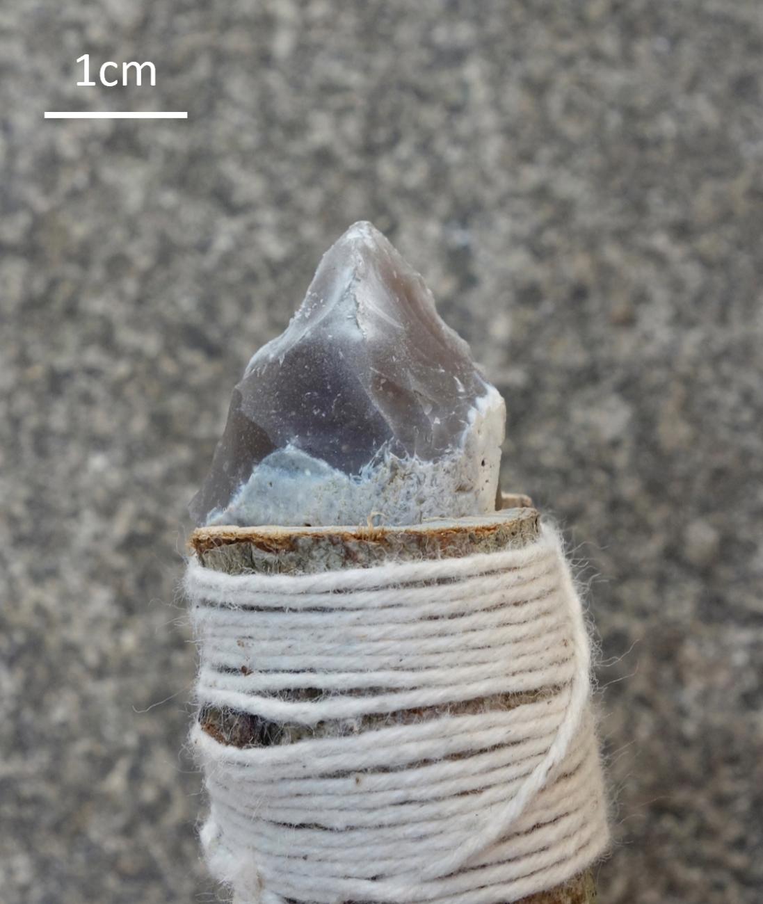 It is worth recording one final observation made during the course of the experiments, this time regarding use-wear on the tools themselves. Tools made from thin-flake blanks (and to a much lesser degree those made from thick flakes) followed a consistent pattern of breakage through use: the force of the hard compact tissue at the perforation opening abrading against the lateral edges of the tool caused tiny chips to be periodically removed from those edges as the hole deepened, resulting in the formation of concave lateral working edges terminating in distinctive 'shoulders', whose distance from the tip of the tool corresponded to the final depth of the perforation (See Figure 14). One lithic perforator from Dąbki (See Figure 8:5 in Kabaciński and Winiarska-Kabacińska, 2023, p.9) exhibits precisely this form, indicating that it may have undergone the described pattern of breakage.
