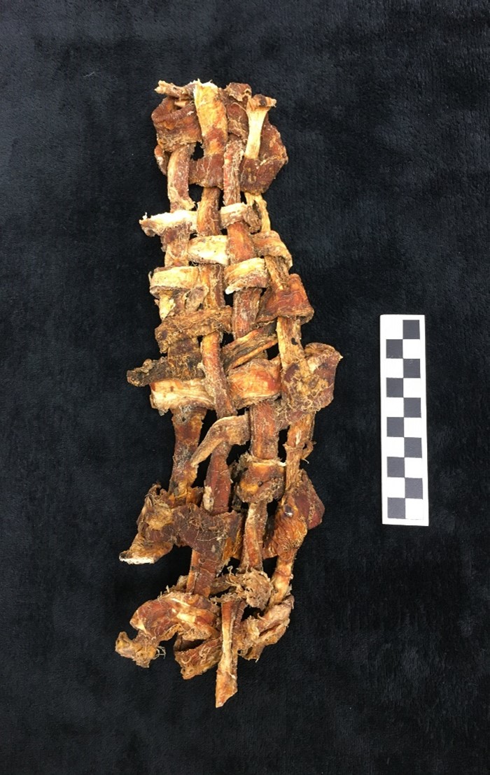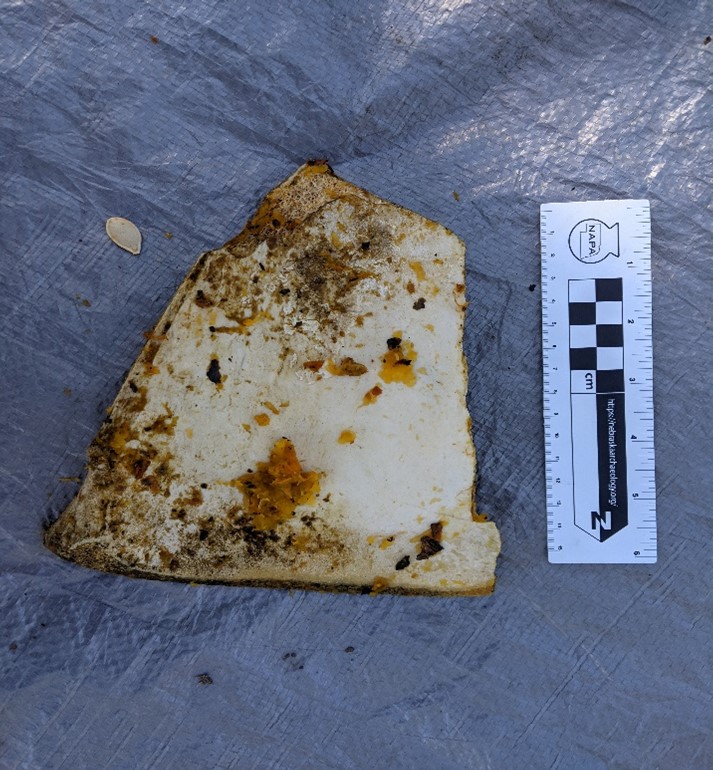 The first conclusion of this experiment implies that no speciality tools are necessary for the production of pumpkin leather mats. While prepared bone knives can work for the process, our results indicated that, for novices, expedient stone tools were more effective overall. We also discovered that dried scapula were much easier to manipulate into bone tools than fresh scapula; it is possible that our novice status did not allow for the most efficient use of these tools. The experiment also tested the considerations for plaiting raw pumpkins versus those who had their rinds scorched first. While few differences were noted between plaiting the roasted versus raw pumpkins in this experiment, the raw pumpkin mat developed mould while the roasted pumpkin mat did not, despite being held in the same conditions. Presumably, this technological development provides some advantages, whether that be through the sanitising of the exterior rind of pumpkin, providing initial drying of the parts, or some other mechanism.
