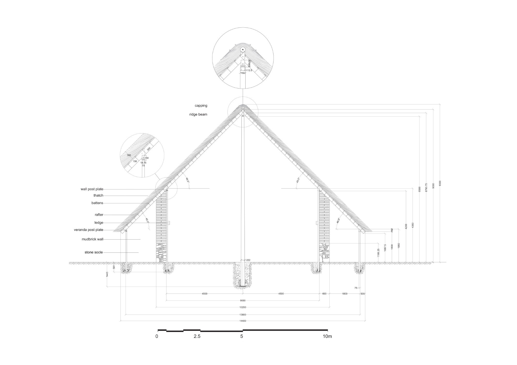 The proposed 45° pitch for the roof could have been calculated using a square equipped with such an angle.85 The covering of the roof with thatch would have completed the whole procedure; the laying of reed thatch would have involved tools such as wooden leggetts and mallets, hammers, reeding-needles, hooks and various cutting tools (The Thatcher's Craft, pp. 205-209).