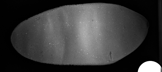 X-rays are easily able to distinguish between simple and folded tablets both in the top-down view and the side view (See Figures 7-10). The air spaces between the folds are clearly visible in the side view and the unevenness of the tablet thickness is visible in the top-down view. In contrast, the simple tablet is characterised by a coherent thickness throughout and an absence of joints or voids.