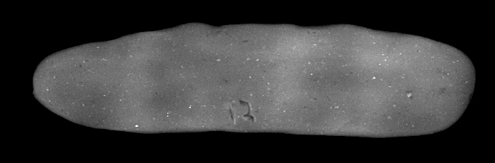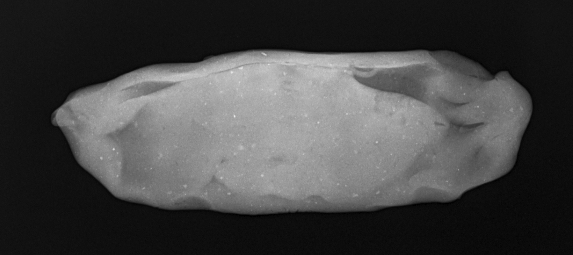 Among the simple tablets, the directional pressure of the rolling pin is only visible, if it is only exerted in one direction without subsequent correction, and pressure is applied to cause thickness differences that are made visible in the X-ray (See Figures 11-12). The same applies to tablets made by applying palm pressure: when done in such a way as to result in thickness differences, then these are visible on the X-ray (Figure 13). If thickness differences are not obliterated by subsequent actions, rolling pin activity and palm pressure can be distinguished by the shape of their imprint into clay: a rolling pin applies consistent pressure across the width of the tablet (Figures 11-12), whereas a palm print exerts greater pressure in the centre than the edges (See Figure 13). Whether or not the clay ball was first shaped into a coil cannot be detected by X-ray.