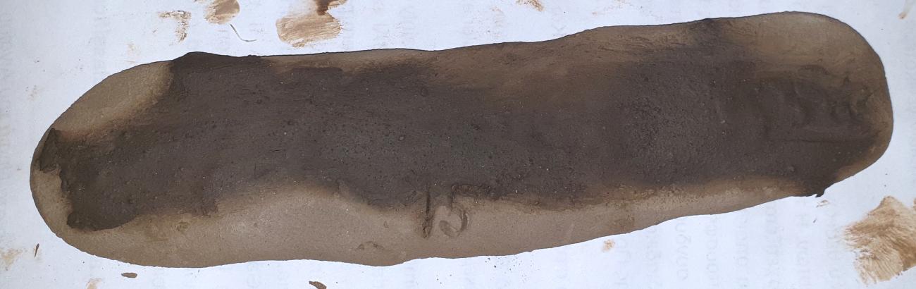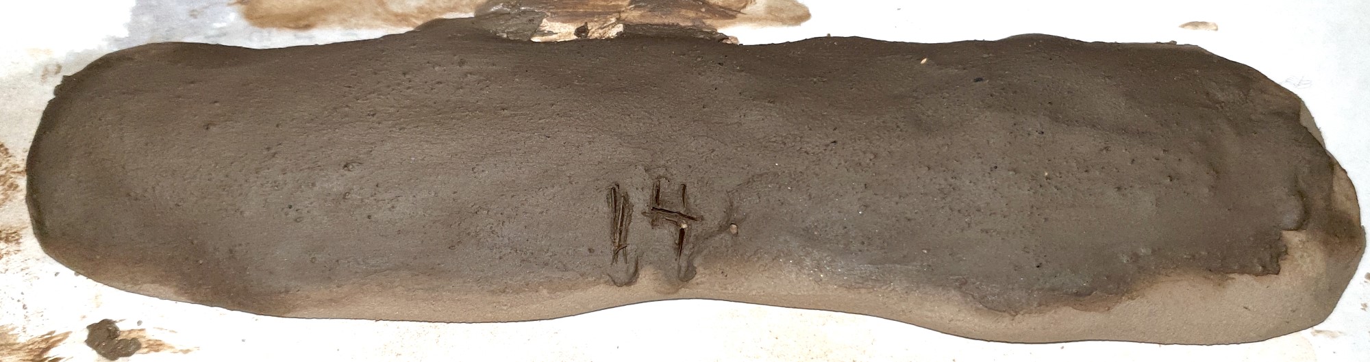 A third set of experiments was undertaken with clay tablets to determine whether inscribed writing that had been erased by ancient scribes (and the tablet re-inscribed) could be detected with X-rays. For this experiment, a simple replica clay tablet had text inscribed into its surface with a toothpick while still wet (See Figure 3). It was then left to dry for different lengths of time before fresh clay or water was applied to the surface or the surface was smoothed with an implement to obliterate the inscription (See Figure 4). That re-inscribing took place has been confirmed by macroscopic inspection of Linear A tablets which has shown that many were, in fact, palimpsests, meaning that the original text had been erased and new text added (Schoep, 1999). In other cases, evidence is more tangential. For example, Linear B tablets were cut to a size inconsistent with the amount of writing currently visible, leading scholars to argue that the tablet size matched the original text which had been erased subsequently and over-written (Tomas, 2013). In contrast to the Minoan and Mycenaean tablets , Mesopotamian ones were rarely erased or reinscribed. Instead, scribes remoulded old tablets or soaked them in water to prepare a recycled batch of clay (Taylor, 2011). No doubt, this form of recycling also took place in Minoan Crete, though we lack evidence for it.