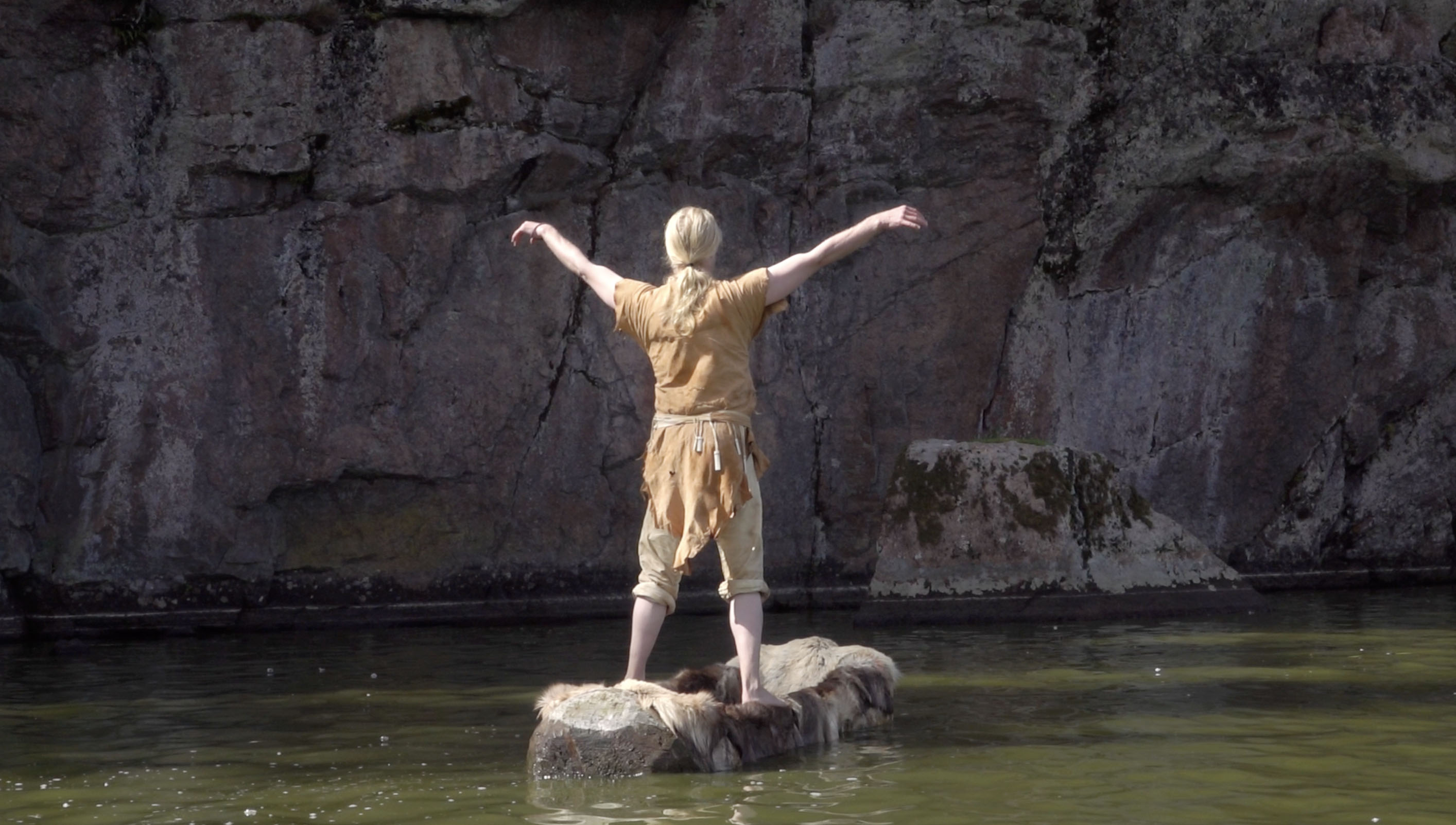 Experimental archaeology replicates past phenomena to generate and test archaeological hypotheses (Mathieu, 2002, p.12; see also Coles, 1979). The replicas, reconstructions, or working constructions typically involved in such efforts are usually physical objects or technical processes intended to provide analogies for interpretation. In the case of the Dug Boat Dance, the phenomenon to be replicated was dancing in a boat, as suggested by the rock art. The experiment was carried out in a watercraft, outfit, and place corresponding to the Stone Age setting as accurately as possible. However, the main element of the experiment was the living body of the dancer, whose sensory perceptions, reactions, somaesthetic experiences, and learning processes provided a source material for new information. Thus, unusually for experimental archaeology, the main research tool was the artist's body and artistic work.