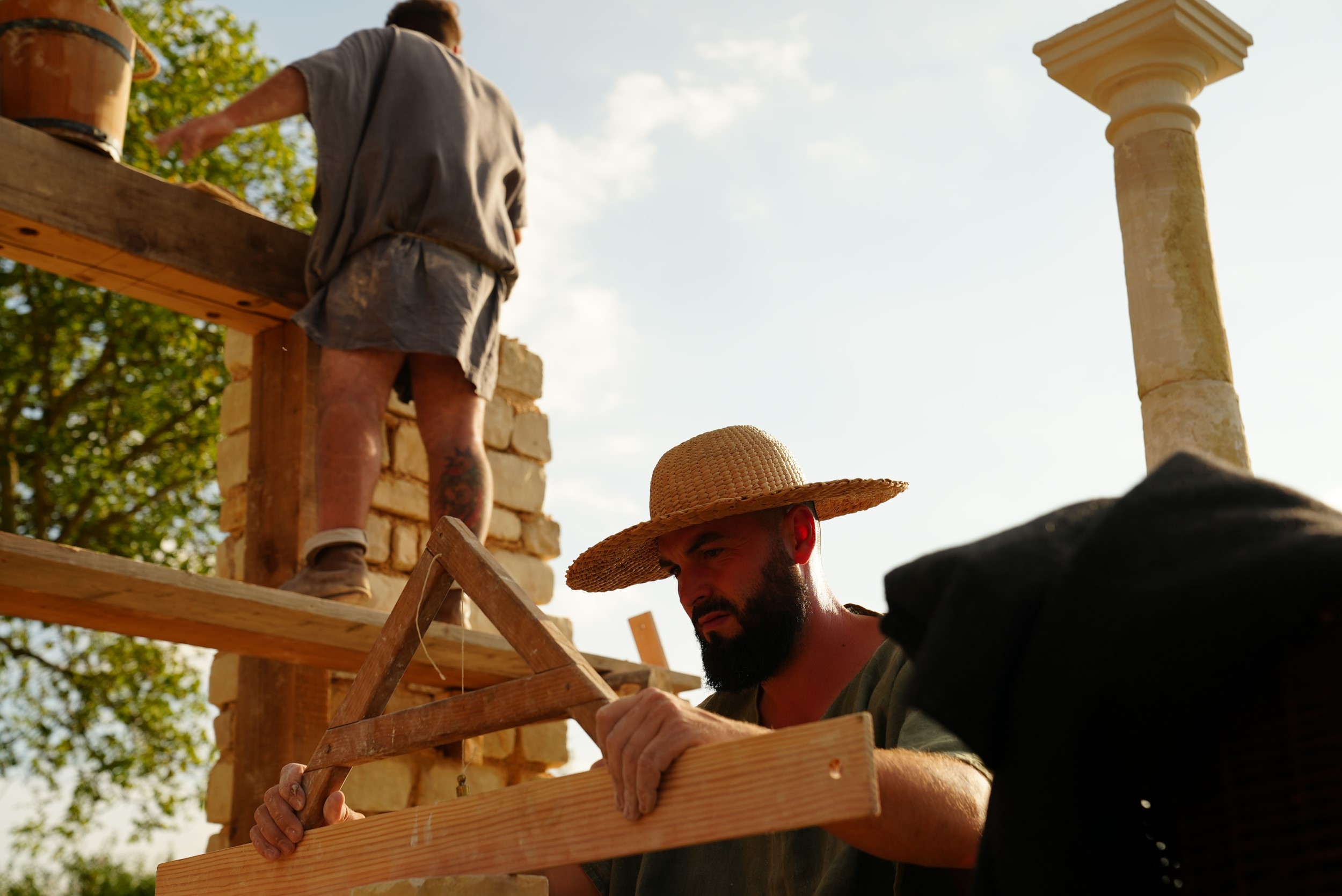 The archaeological site of Alésia, famous for its decisive siege, which saw the defeat of Vercingetorix and the end of the Gallic Wars, boasts an impressive oppidum (hilltop settlement). Most of the archaeological features that can be discovered by visitors pertain to the roman period, as the site was transformed into a secondary city. The MuséoParc of Alésia organised a week-end event around the theme of roman crafts in August 2023, and the Fabri Tignuarii were very grateful for their generous welcome. Like other historical events, we only employed copies of roman tools, dressed in the manner of craftsmen of this period, with materials that would have been in use.