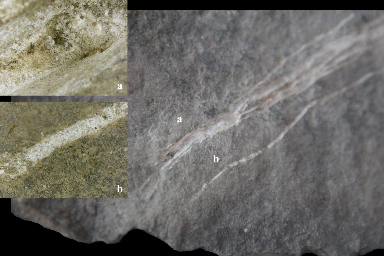 Similar results were obtained when engraving with blunt (Experiment No. 16, 17) (See Figure 19) and sharp edges (Experiment No. 19). The blunt edge of a flint flake left practically no micro-striations inside the groove, whereas the sharp edge produced many striations on the valley of the engraving. It is worth mentioning that during Experiment No. 19, the experimenter made an error, resulting in an engraving with two branches.