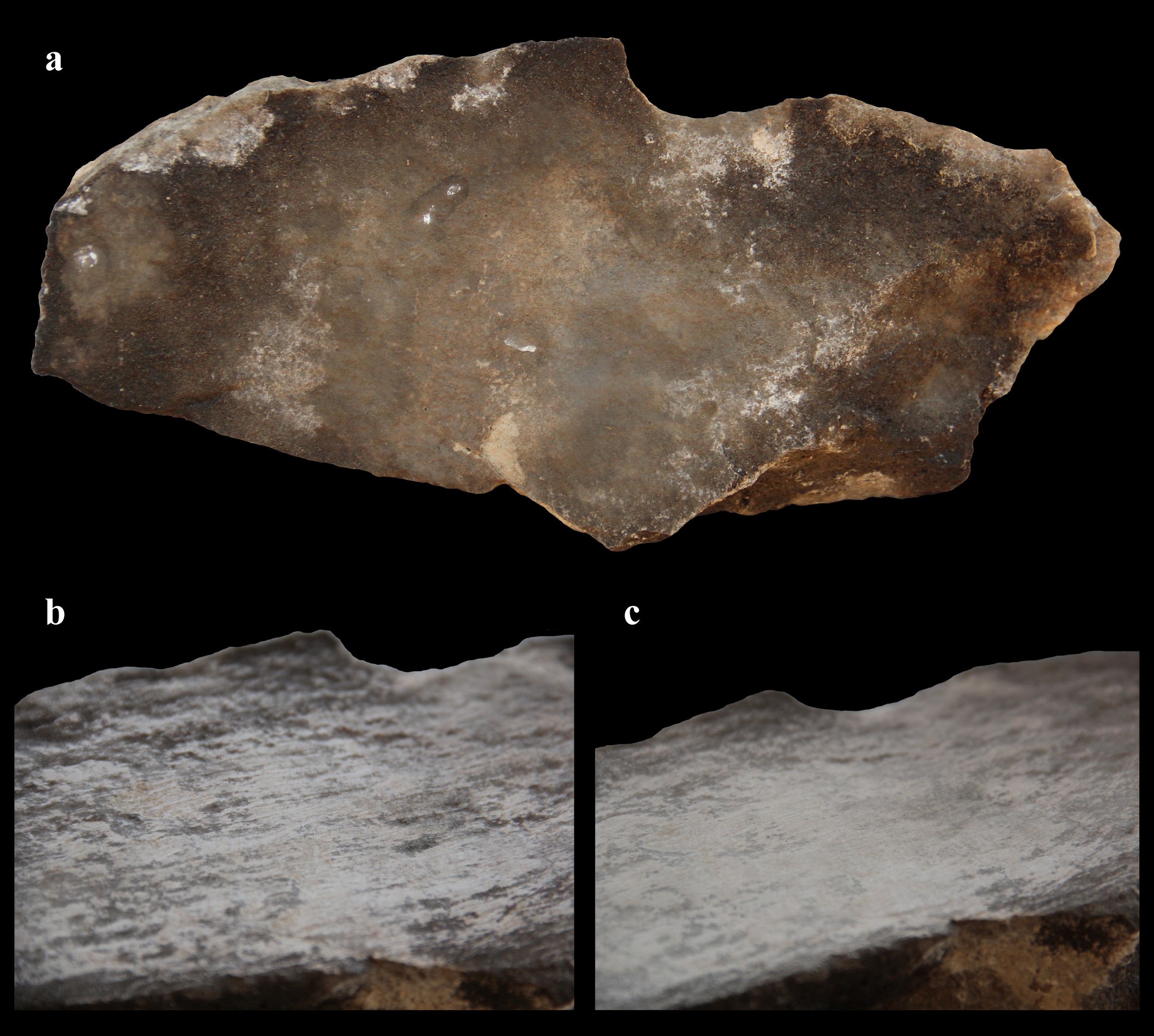 | 4 | scraping | rock | 28x26 cm | flint flake | sharp unretouched edge | Bidirectional | 5.5x4.2 | 4 | ||