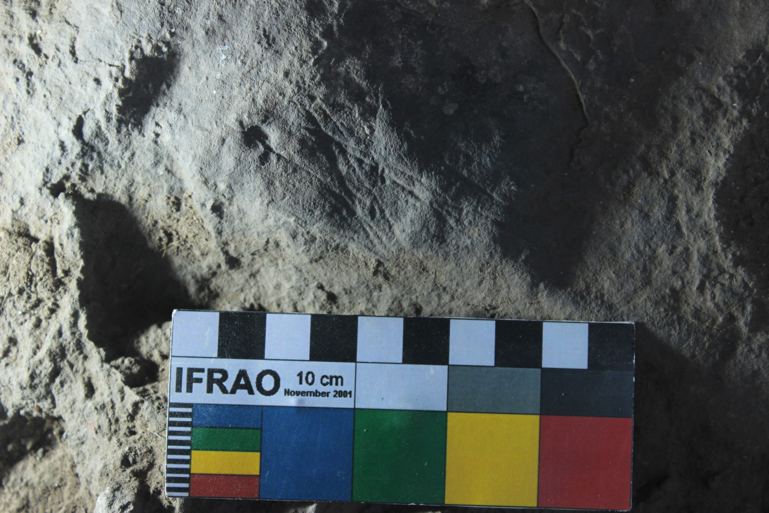 In 2022 and 2023, two fieldwork campaigns were carried out at Mghvimevi1 with the aim of rediscovering and studying the Mghvimevi petroglyphs. As a result, more than 20 engravings were documented on the limestone floor of Rock Shelter No.5 (See Figure 3). Upon close observation, all engravings were revealed to be linear, composed of vertical, horizontal, and diagonal lines - sometimes intersecting - ranging in length from 3 to 32 cm, with varying depths and widths from 0.1 to 0.6 cm (Zavradashvili, et al., 2023a; Losaberidze, Zavradashvili and Kenkadze, 2024).