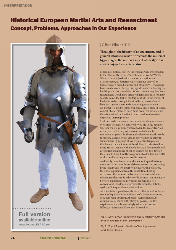 How accurate can re-enactment be? Gábor Fabián shares the experiences of ‘Schola Artis Gladii et Armorum’ in his article, Historical European Martial Arts and Reenactment - Concept, Problems, Approaches in Our Experience.