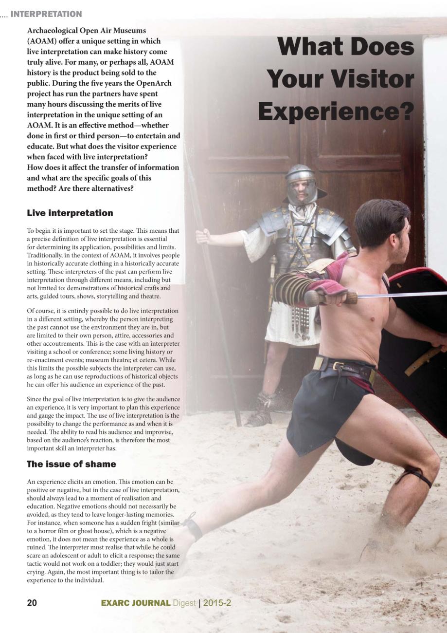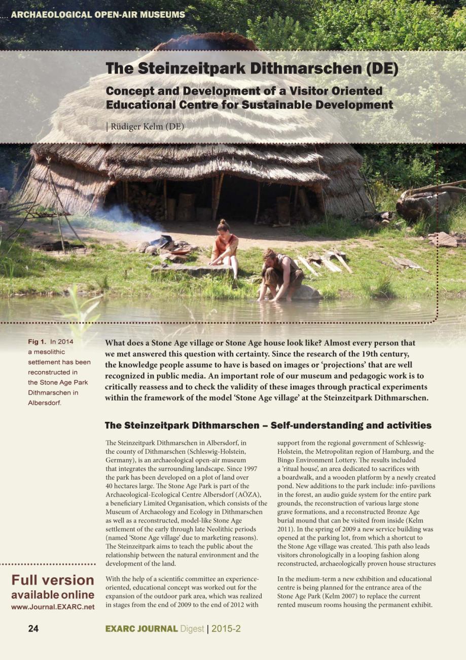 at St Fagans. Another aspect of presenting the past to the wider public is portrayed in the article What Does Your Visitor Experience? Making the Most of Live Interpretation in a Unique Setting by Mark van Hasselt. This is followed by presentations of two archaeological open-air museums: The Steinzeitpark Dithmarschen (DE): Concept and Development of a Visitor Oriented Educational Centre for Sustainable Development and: Montale, the Terramara Lives.