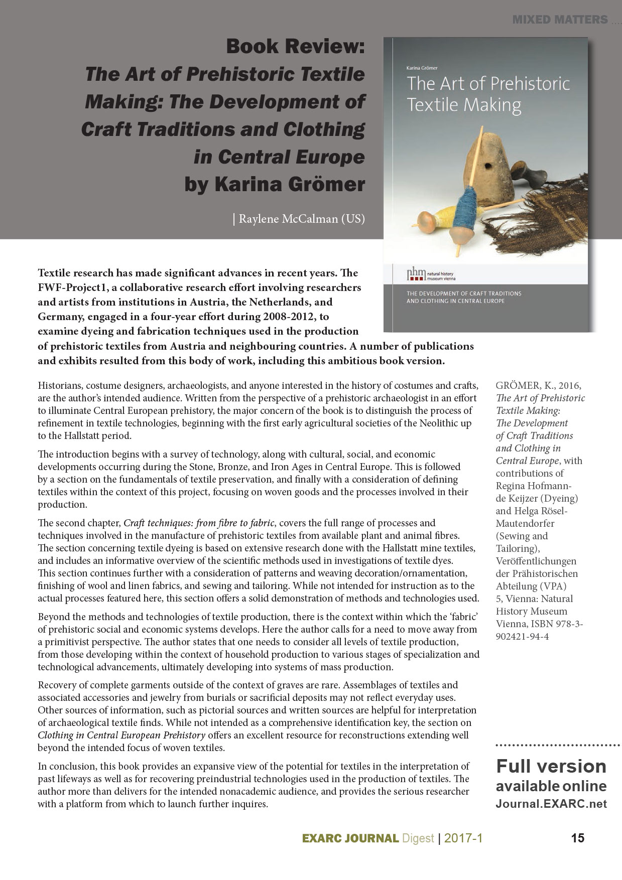 © EXARC, 2017 | ISSN: 2212-523X | Size: A4, 36 pages, full colour, circulation of 500