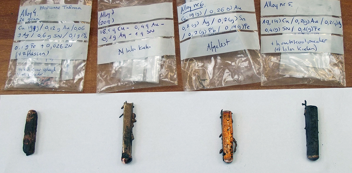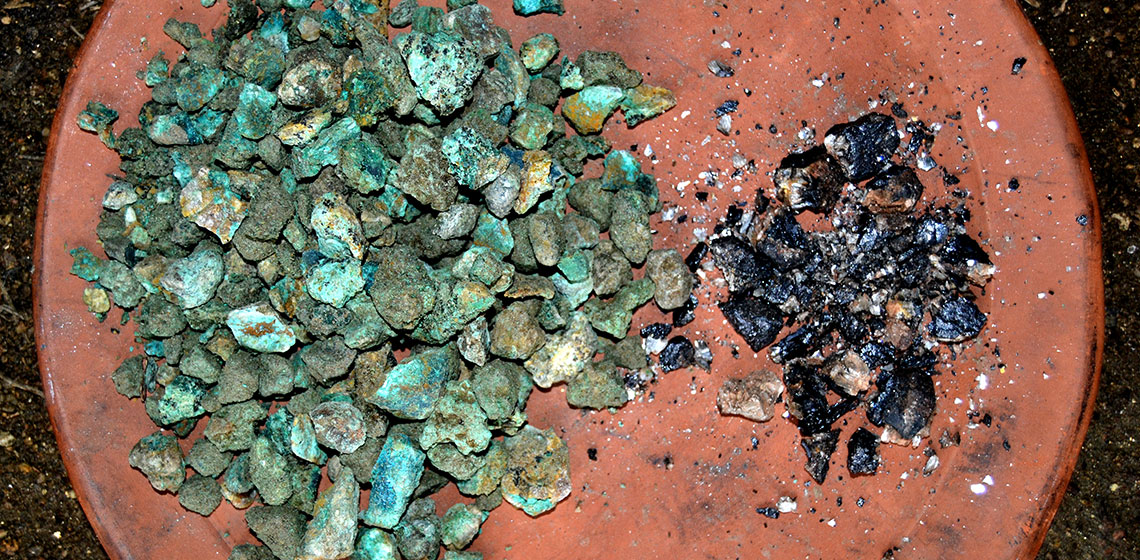 ***Artificially patinated copper alloys are found archaeologically in polychrome artefacts from the 19th century BC Egypt to historical and contemporary Japan. The unusual colour variations observed in these patinas, ranging from black to blue to purple, is due to a minor amount of gold (Au) and silver (Ag) in their copper matrix, whereas accompanying elements such as tin (Sn), iron (Fe), and arsenic (As) might influence workability, hue or shine.
