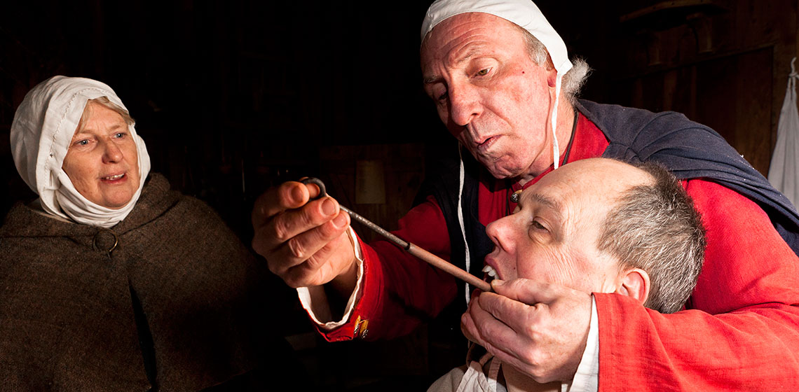 It is the year 1350 in Gravendam, the medieval town of Archaeological Open-air Museum (AOAM) Archeon in the Netherlands. There is a great deal of commotion on the street when the master cabinetmaker, John, screams out in pain and despair caused by a cavity in one of his molars. The sound of his scream is heard by everyone!...