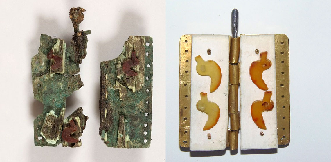 The present work is a reconstruction which was made with two objectives in mind. Thee first was to experiment with heat-treating of amber, a technique already hypothesised by Von Eles (1995), in order to verify possible resin alteration due to heating. Although already tried in the past (Fiorentini, 2018b) after having conducted some cold-working experiments (Fiorentini, 2018a)...