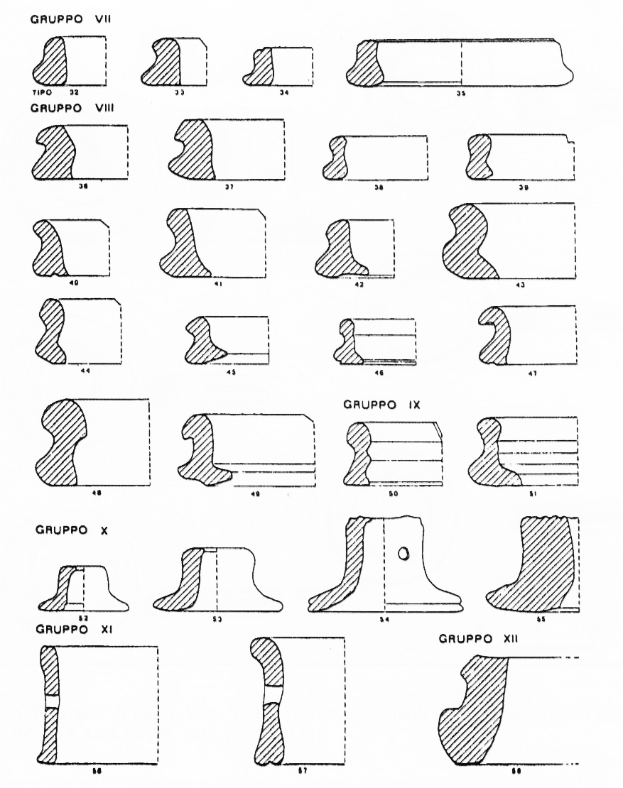 To avoid excessive local temperatures over the slotted platform, where flames, smoke, ashes and hot gases rise, we believe that supports were used to separate artefacts from the platform (this supposition in based on archaeological records). Either in Greece6 or in the West7 , from the Archaic Age to later periods, we record unturned wedge and stirrup shaped supports and big, turned ring shaped supports that were insert between the slotted platform and the artefacts to increase the stability of stacks or to separate the artefacts from the platform. Ethnographic analogy suggests two other possible solutions: first one is to put pottery fragments on the slotted platform in order to avoid the direct contact between the artefacts and the fire; second is to place tiles or bricks between the platform and the bowls. Both these solutions were used until recently by the potter CosimoVestita from Grottaglie (Cuomo di Caprio1982, 165-180). In Etruscan-Padan plain, the archaeological analysis of the technical elements called âsupportsâ contributed to a primary and temporary classification based on empirical analysis (See Table 1).