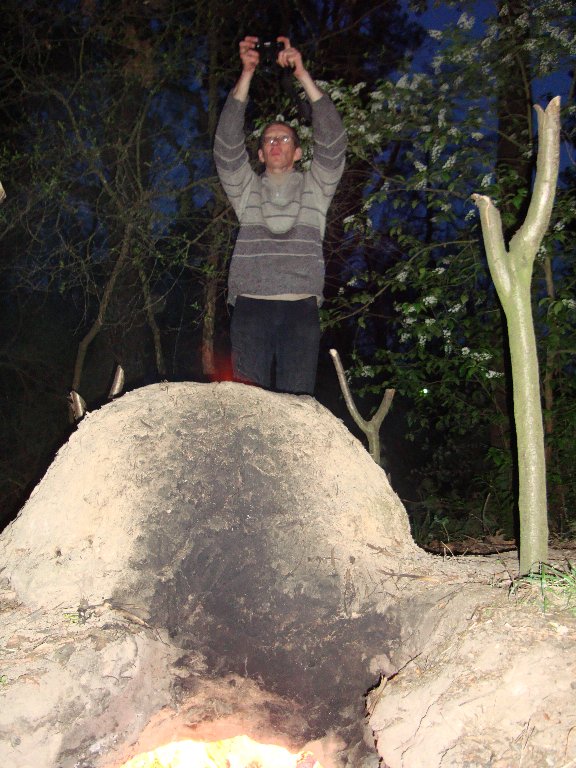 One day we spent at an archaeological camp in the forests near Khodotsivka. Excavations have been taking place here for over a decade, and students and staff camp in the forest in tents, old wagons, all equipped with electricity. The site is also used for some replicative experimentation. One of the themes they had a lot of experience with, partly based on ethnographic research, is bee farming in hollow trunks. At the archaeological camp a pottery kiln, based on a 10th century model is being fired regularly. Petrauskas cooperates in these matters with Igor Anatolijovitsh Gotun of the archaeological institute of the National Ukrainian Academy of Science.