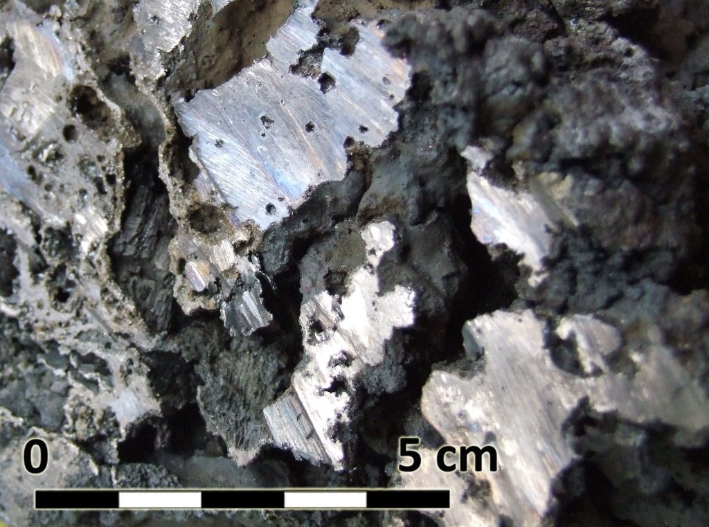 The importance of liquid slag for the process is undisputed at the present time (Sauder, Williams 2002, p. 129; Wrona 2012, p. 616). Strong liquefaction of slag is also confirmed in ancient slag blocks, which have a dense upper crystallized area usually formed from one mass (Suliga 2006b, p. 68; Bielenin, Suliga 2008, pp. 70-75).The biggest problem so far was keeping the charge on the level of blast and draining the whole slag into slag-pit (Bielenin, Suliga 2008, p. 62). The main aim of these smelts, besides getting iron of course, was to obtain a solid slag block similar to ancient residues. Unfortunately only one smelt (with bellows) was completed as intended.