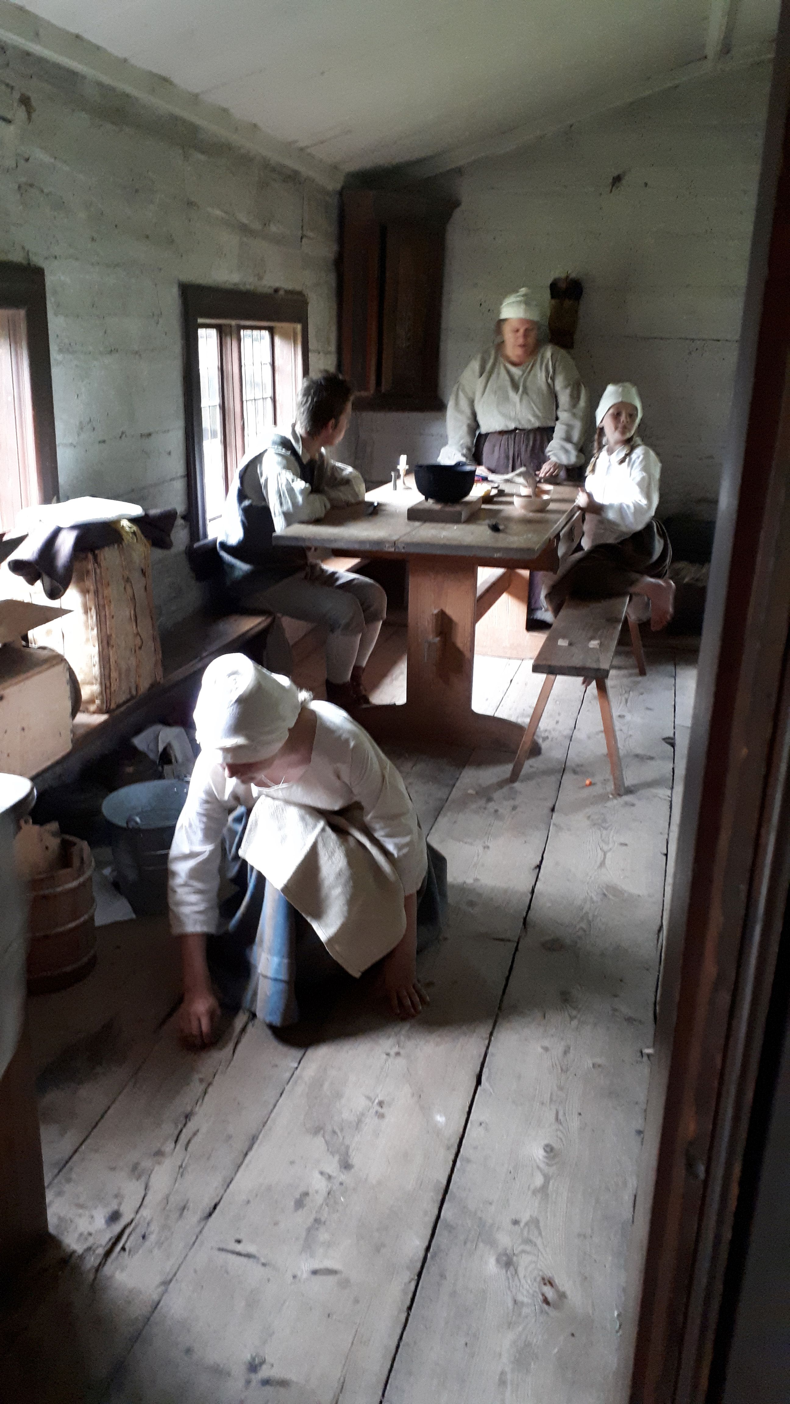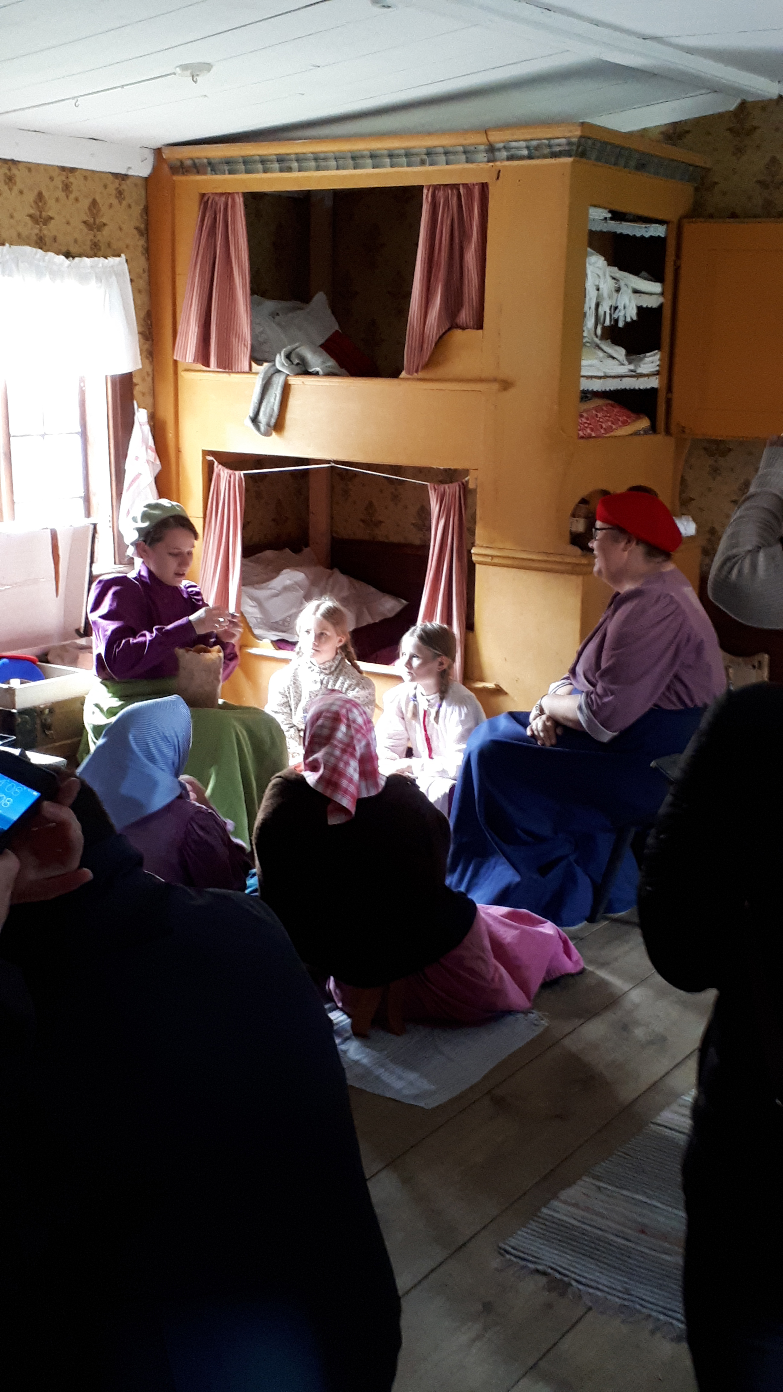 In preparation to the meeting, Annemarie visited Jamtli the day before the course. She had last visited the museum in 2012, just outside the main season and was now very interested in the so called ‘History Land’; with all open-air locations staffed by live (historic) costumed interpreters during 6 weeks in summertime only. It was apparent that the standard of not using the English language during conversations between live interpreters and visitors (only in the representation of the 70s allowed by Jamtli) was a barrier to the general experience of ‘History Land’. No live interpretations were available when visiting alone and only one interpreter would speak English to me out of sight of other visitors, except for the historic shop employees. One would have felt more welcome if the interpreters acknowledged the individual and yet spoke Swedish when trying to explain something. Moreover, as Jamtli has proudly chosen to be geared towards family activities, a single visitor feels left out, as you are unable to actively engage with History Land. Not only are the activities not accessible to the individual, but you also feel ignored, even though not intentional, as this is could be an unwanted side effect of the focus towards groups (families) and not inclined by purpose.