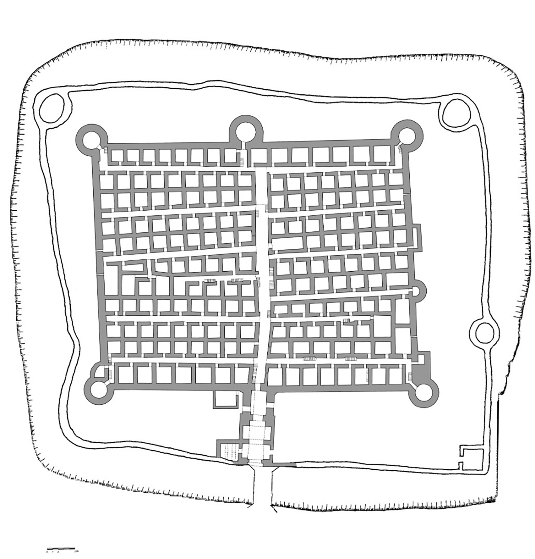 The inner section consists of housing elements and storage rooms, which were spread alongside a central road with inner narrow paths and corridors. Naiemi suggests that the complex was arranged according to a well-drafted predetermined plan (2018, p. 220). The rooms are very tight, with shelves and niches. Only those located on the second and third level have natural light entering during the daylight. This is a clue that long term residency was almost unlikely (Naiemi, 2018, p. 225). Rooms are also located between the inner and outer fortification walls, and these were likely added at a later stage as the population within the walls grew (Hajisaeid, 2020).