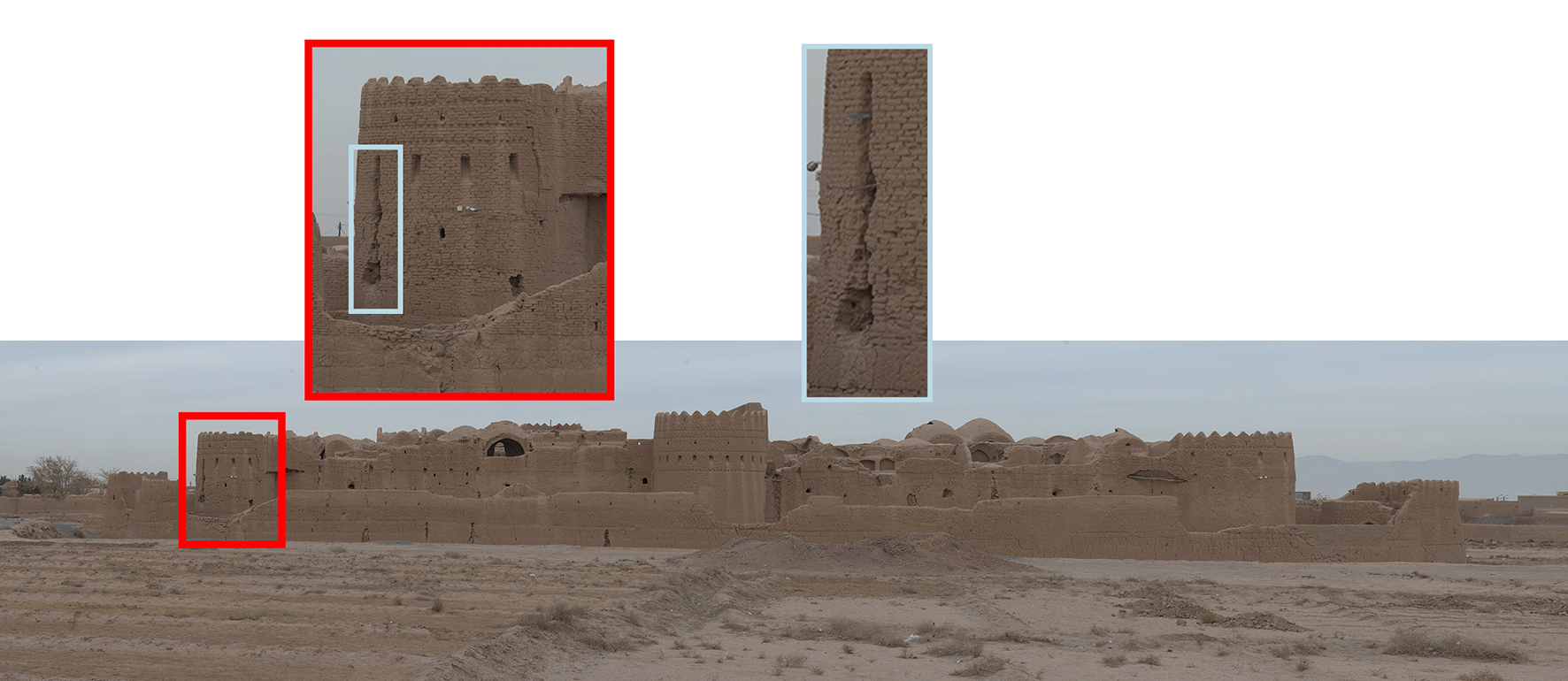 There are many known causes of damage to earthenware structures, including coving, cracking, wind erosion, infiltration of flora and fauna, human activity and natural disasters. A documentation project was suggested in conjunction with the Iranian Federation of Tourist Guides Associations (IFTGA) to record the structure, providing documentation for research, monitoring, education and preservation. This was accomplished through the creation of a 360º virtual tour, photogrammetry and high-resolution panoramic photography.
