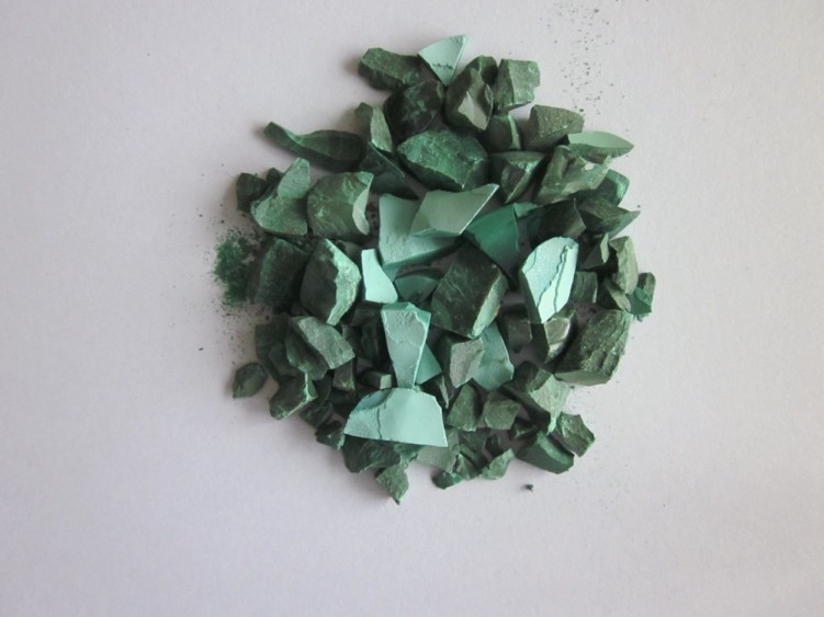 After the experiments, the samples were separated and scaled. Furthermore, the product from malachite was analysed for its copper content using ICP/MS.