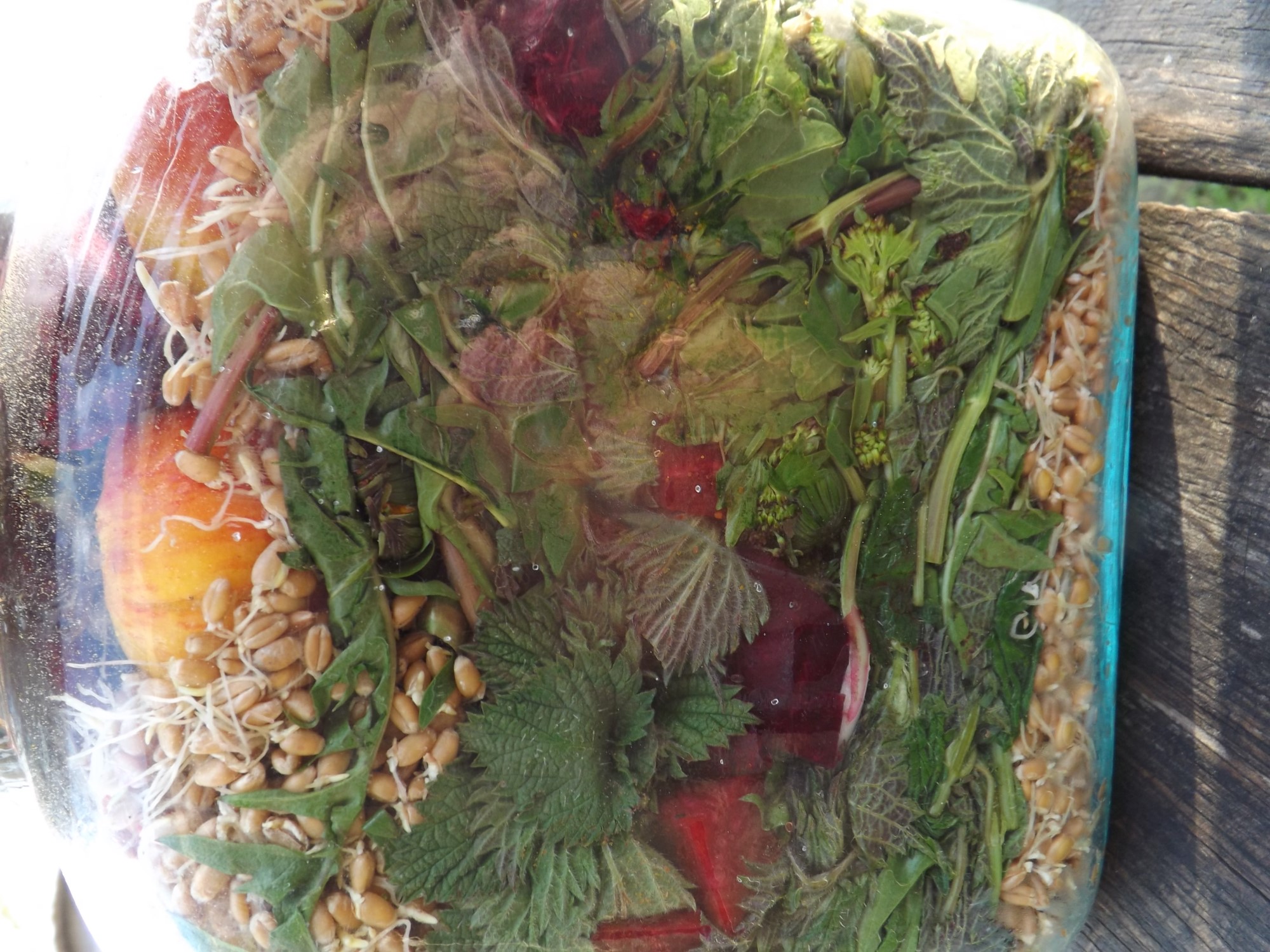 Additionally seeds of five domesticates (rye, Secale cereale L., wheat, Triticum aestivum L., medlar, Mespilus germanicus L., peas, Pisum sativum L. and grapevine Vitis vinifera L.) were fermented and stored as wet preserve in jars. After different periods the processes of transformation were documented and survivability issues were considered (see 5. Lactic acid fermentation experiments).