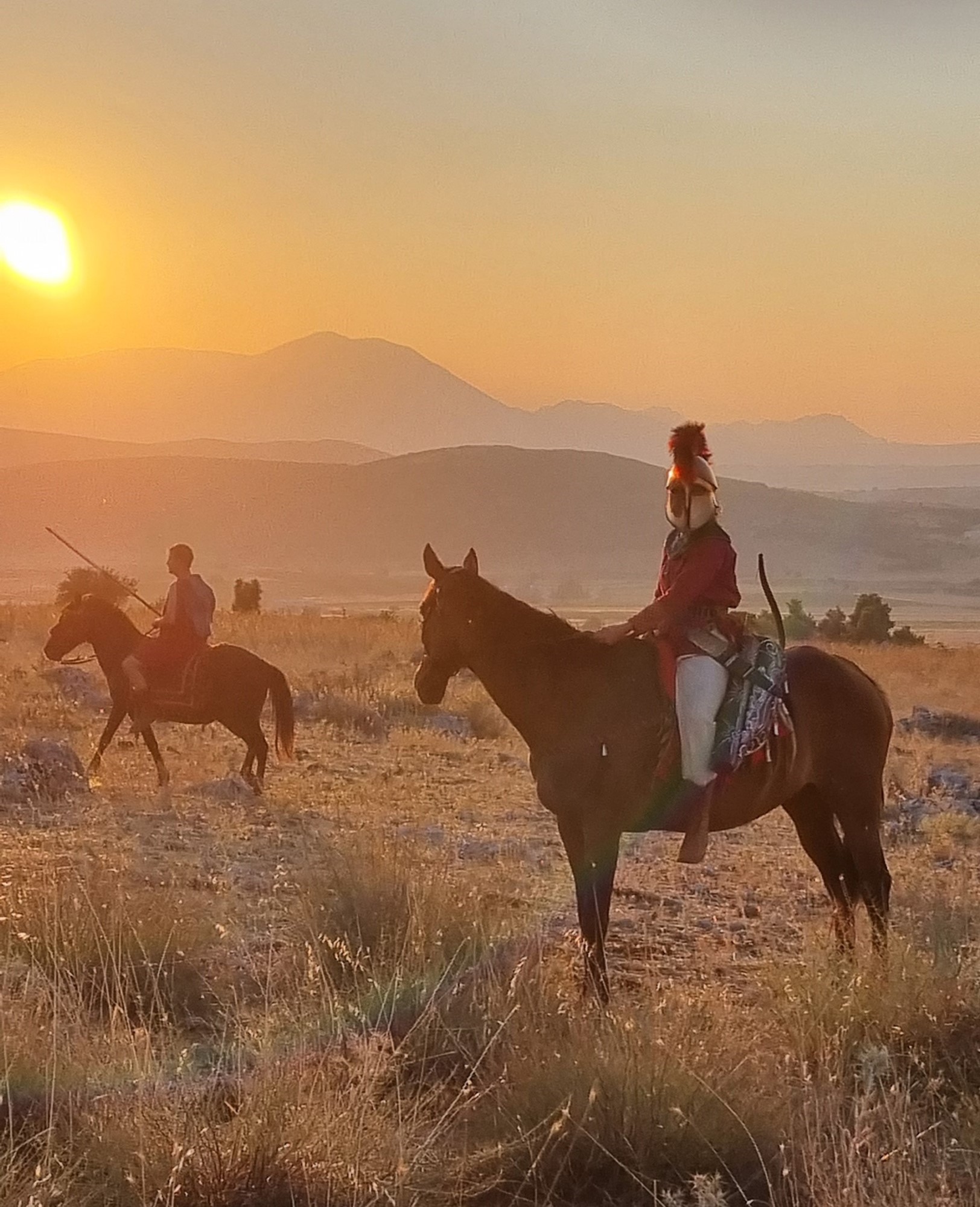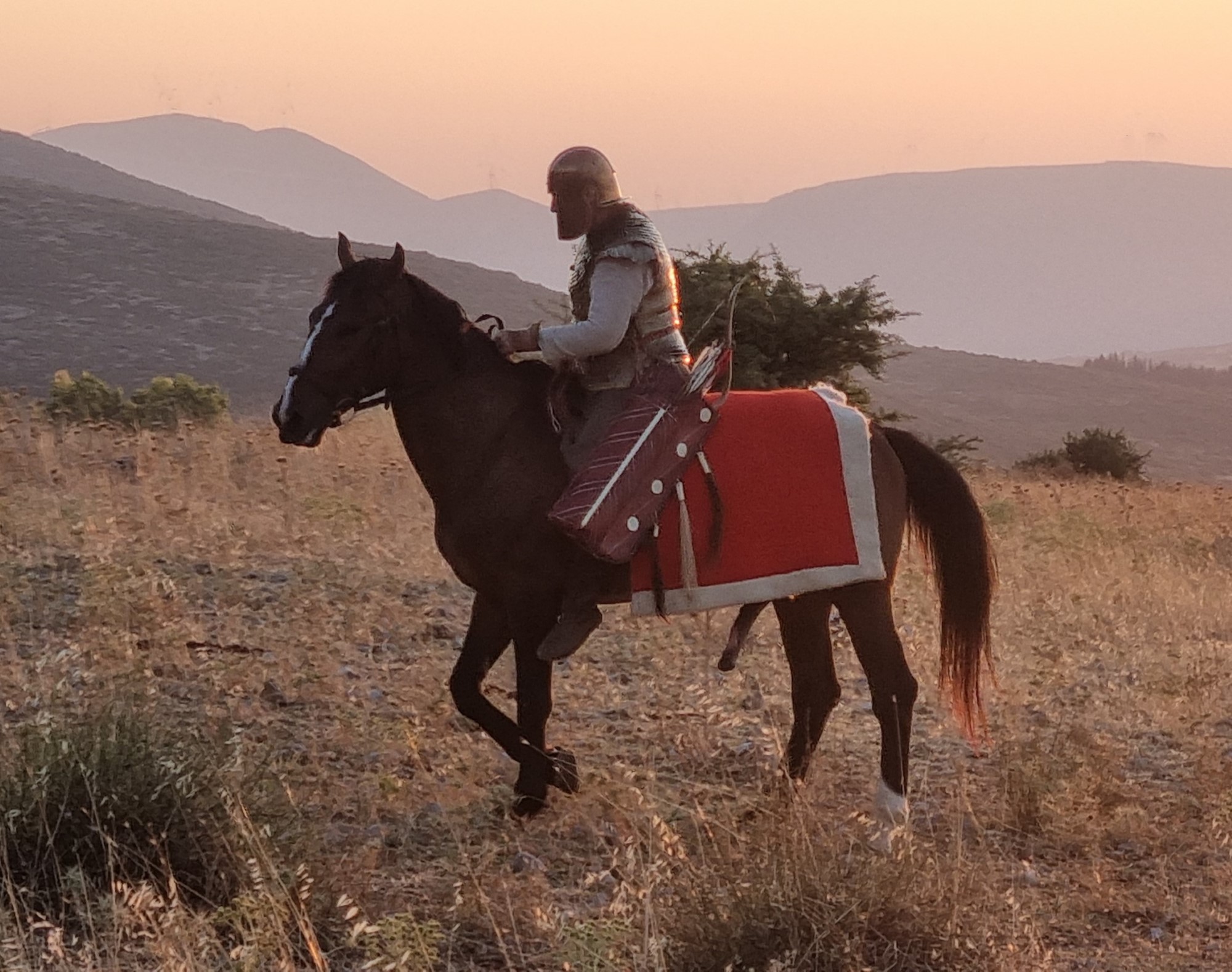 It was a pleasure and a privilege to ride on the site of the actual battle, and we hope to return to Greece in 2024. We put fourteen people on the horses over the five days, in 38-42 degree heat, in baked fields and stony terrain, in different locations, on cross country marches, with horse archery and sharp weapons, with a range of impressions, with inexperienced challenging mounts, and not a single person fell off. Time was always in short supply, but horses were fed and watered, lessons were given, and equipment was repaired and adjusted. This would not have been possible without the skill and experience of the riders.