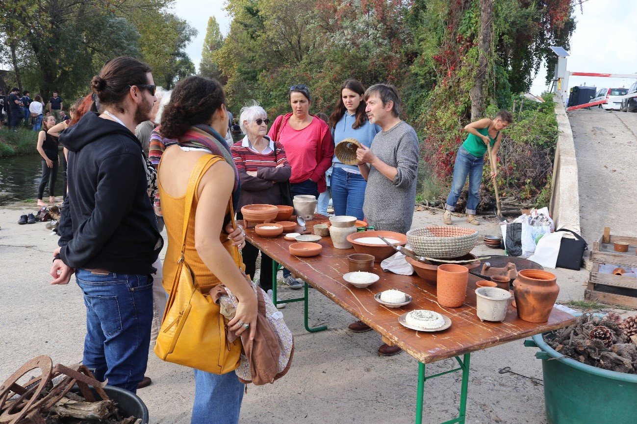 At the end of the Congress, life experiments and demonstrations took place in the centre of the beautiful scenic Pézenas-village. Examples of fire-lighting, woodworking, bronze casting, leather process, stone engraving, navigation in a Neolithic boat, basketry, prehistoric music, traditional cheese production and flint knapping (See Figures 2, 3 and 4).