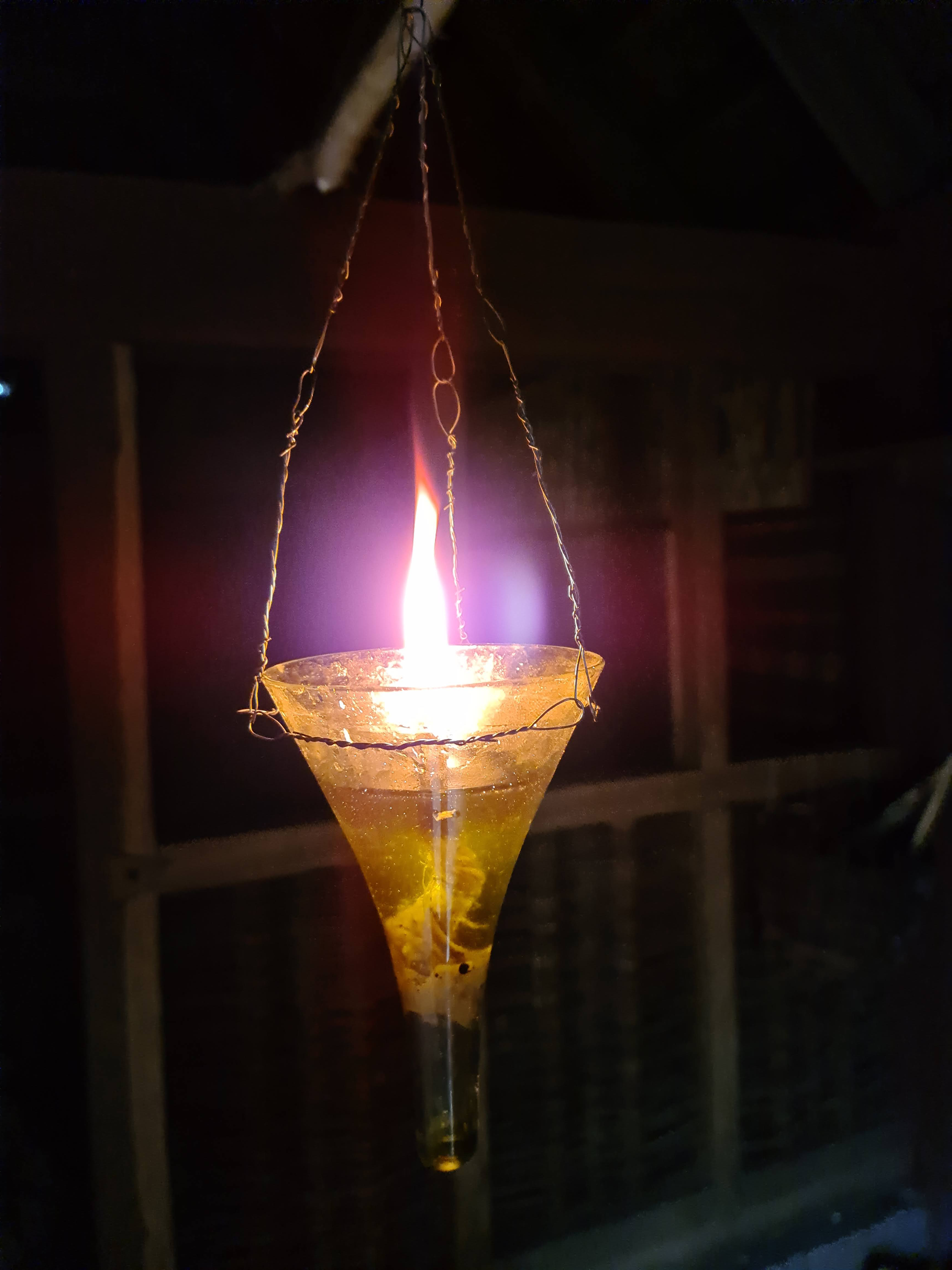 The lamps work incredibly well. The glass means that the lamp has no shaded areas but provides a clear light that spread throughout the historic house in which I hung them. When I experimented, the lamp burned for five hours without being refilled. Such a lamp would certainly be an impressive sight that would turn the neighbours green with envy.