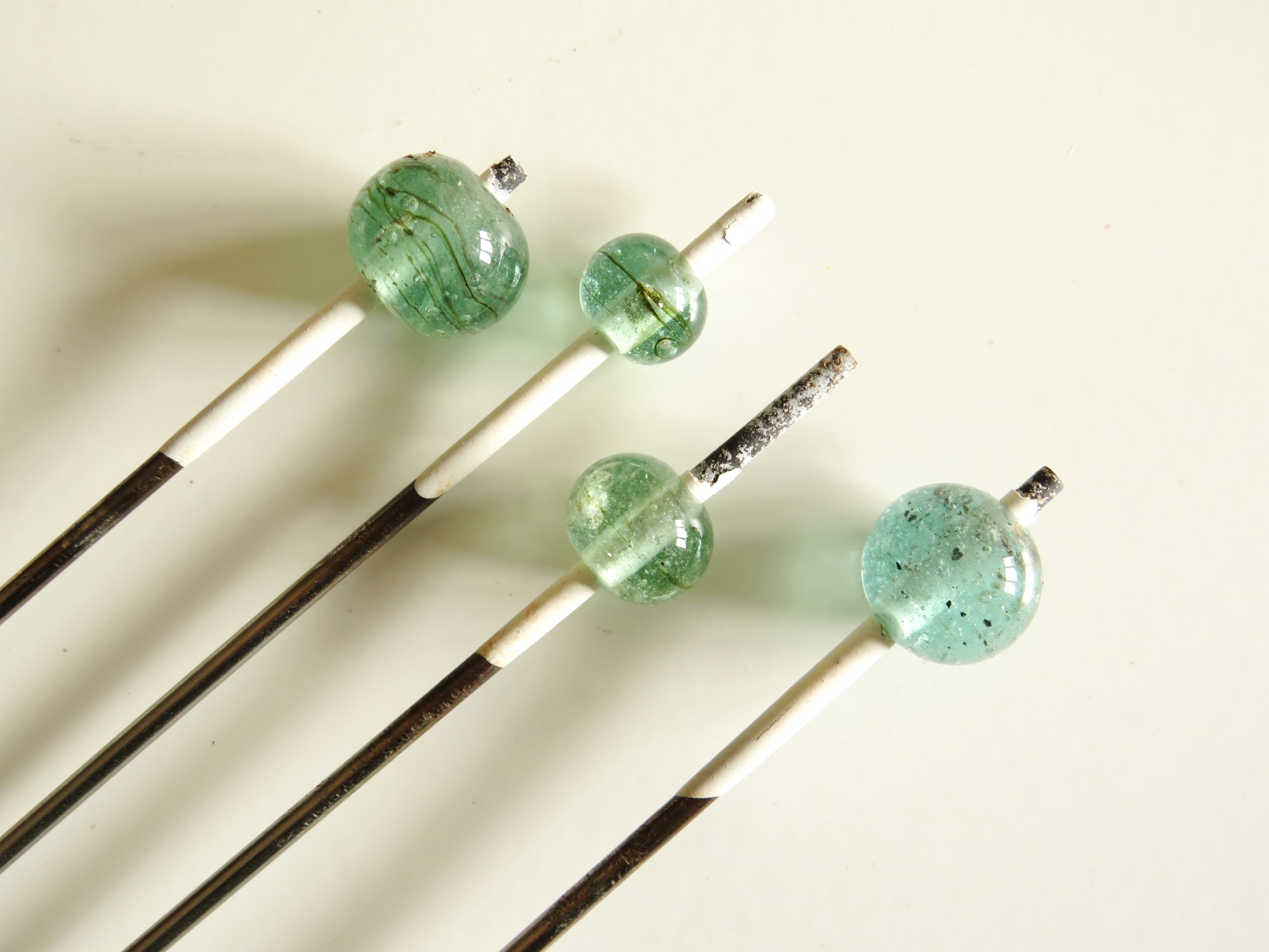 This experiment was formulated to test the glass for making beads. This practical test was conducted with several different types of glass to compare and contrast the behaviour of different types of glass when making wound beads over a simple flame.