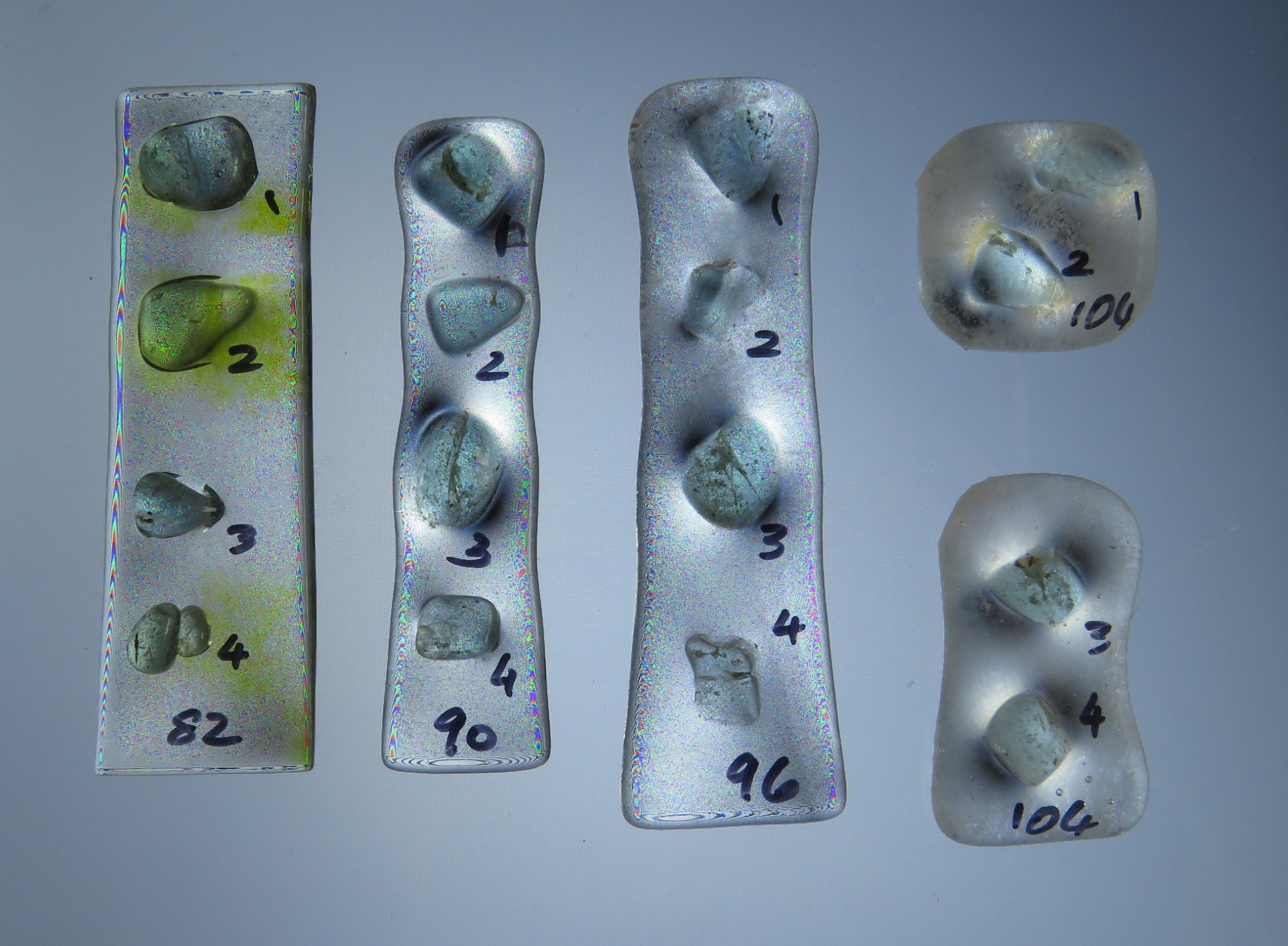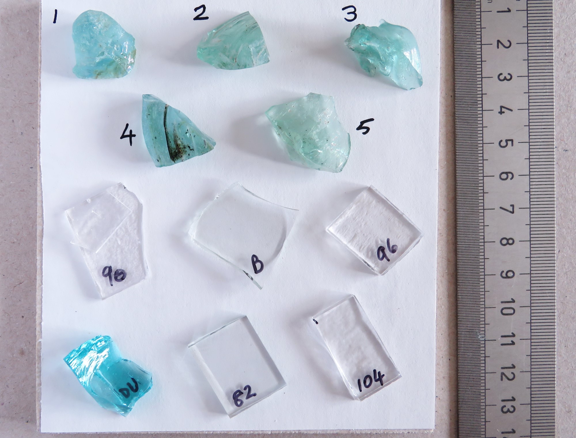 2. Fusing glass COE 96 - 5 samples from the same sheet of glass