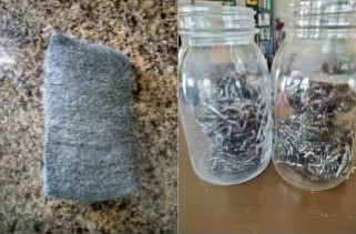 - The steel wool was then placed into quart jars, filling Âľ full, and covered with a combination of a two-to-one ratio of water and white vinegar. Caution was taken to not overfill the jar as the chemical reaction does cause it to initially bubble up.