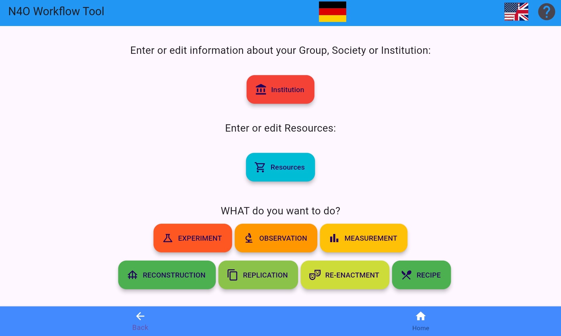 When planning and running an experiment, it is also important to record and explain decisions. Our workflow tool is designed to plan and record this reflexive process, not just observations.