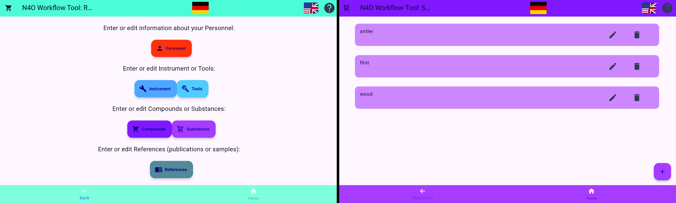 The user of our workflow tool will work through a series of pages (See Figure 2) of a type that should be familiar to anyone who has ever used a smartphone or the internet. Most of the pages are devoted to populating the flowchart menu with an inventory of building blocks that can be combined into an experimental process (workflow). Filling up the inventory could, admittedly, be tedious, but should only need to be done once; importing such a list (from a file or through an API, see above) could speed up the process. In the future speech-text conversions using AI and NLP techniques could be also implemented (e.g. Tupayachi, et al., 2024; Macioł, et al., 2025). Entries can be revised by adding details later. At present the input forms mostly consist of simple text-entry fields, but some of these will be switched to radio buttons or check boxes, drop-down menus, etc., as needed (and to make the interface more inviting). The priority right now is identifying which fields need to be included, but users should eventually be able to enter their own fields using a drop-down menu.