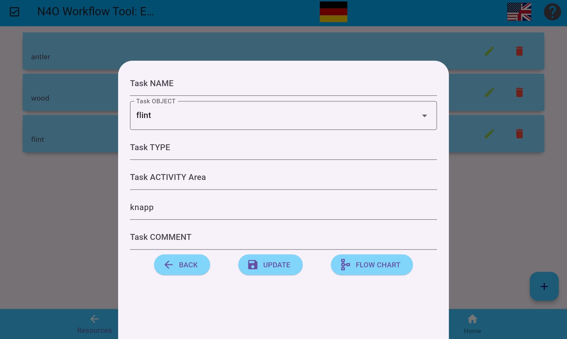 Photos can be attached to the resources, either directly in the workflow tool, or in external databases imported into the workflow tool.