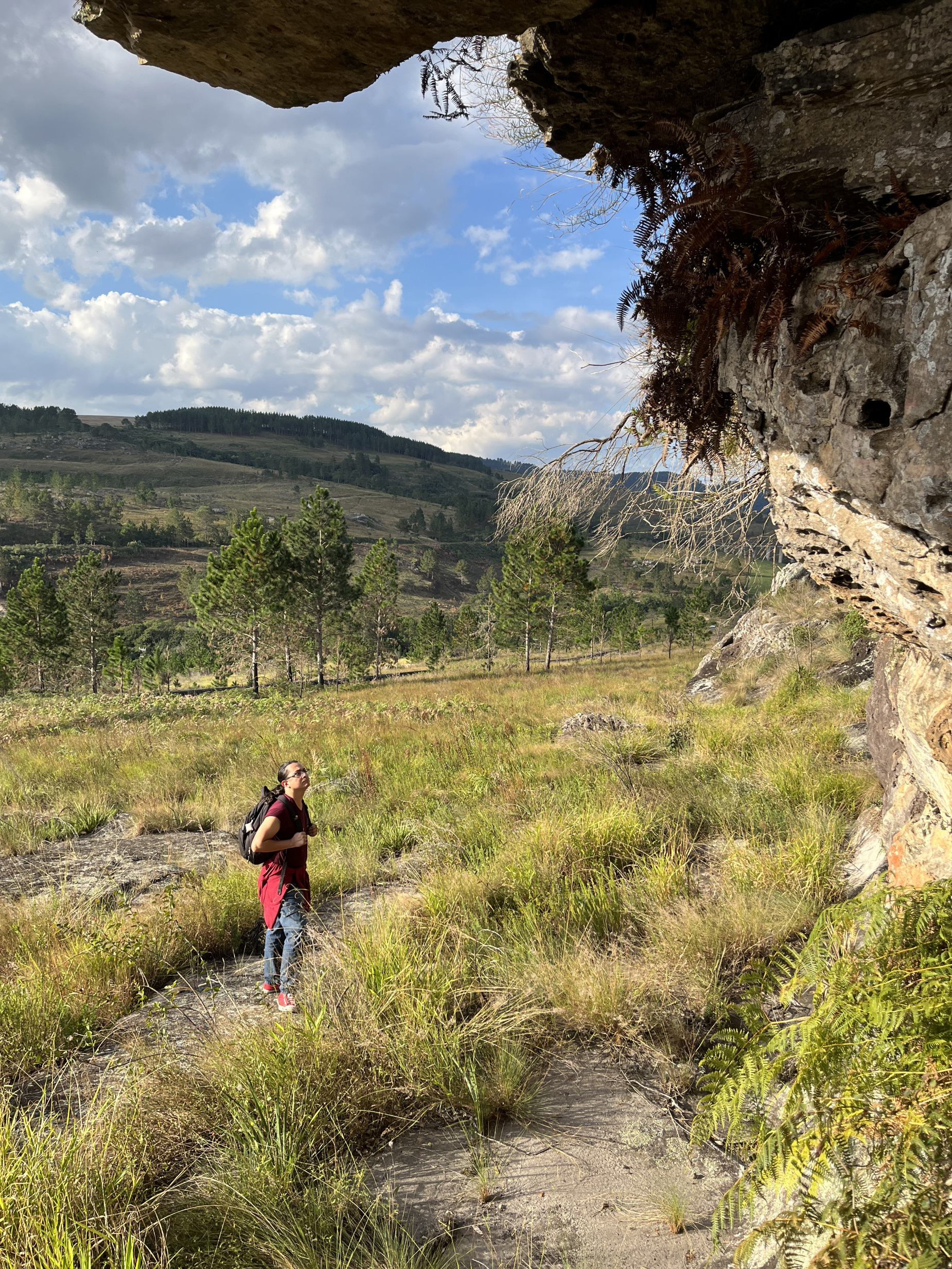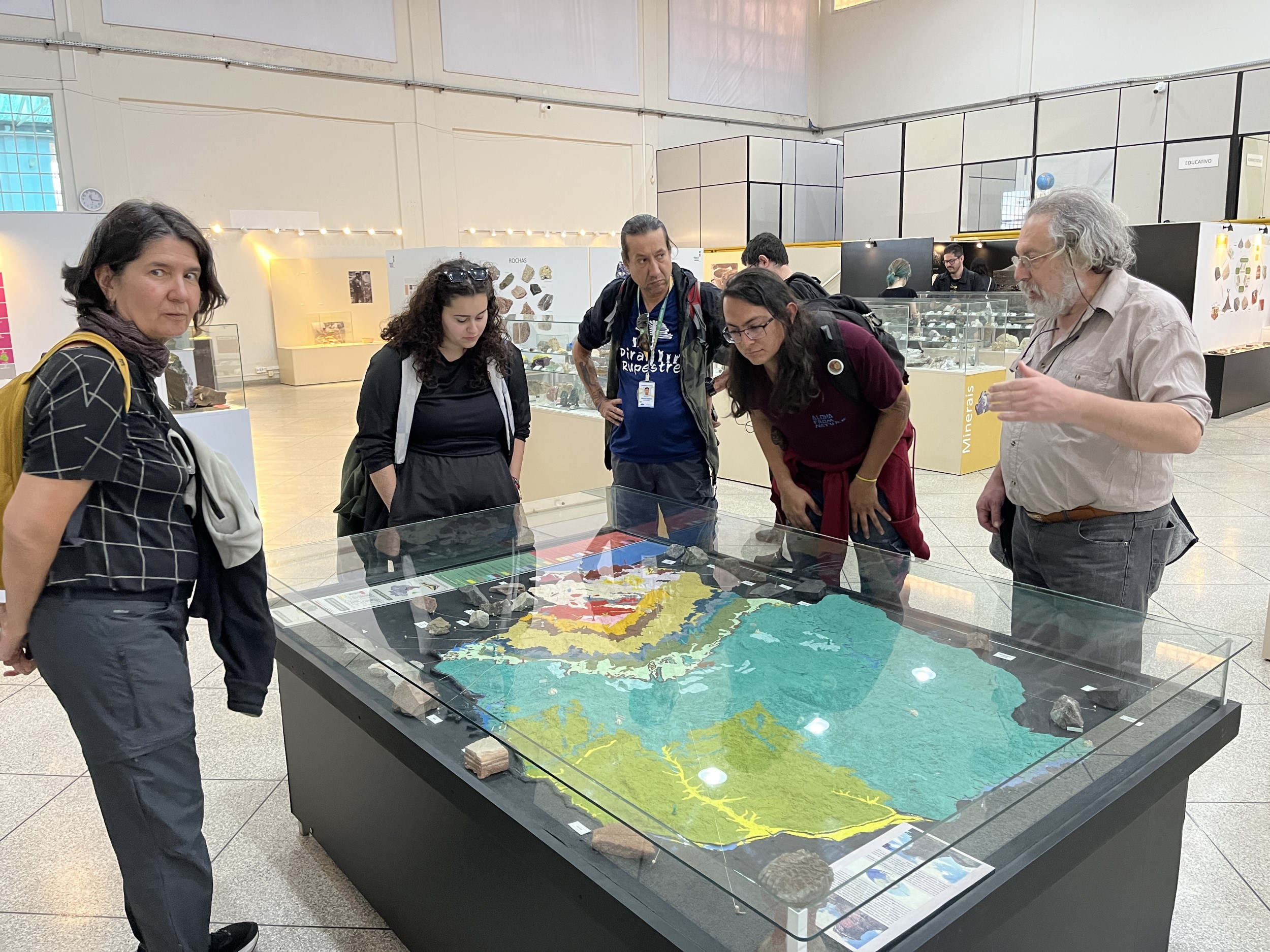 On the second day the bus drove west, into rolling hills and grasslands. First, participants were shown around the Museum of Natural Sciences at Ponta Grossa, which houses an impressive collection of rocks and minerals and focuses on a geological perspective of Brazil. After lunch, participants hiked out into the countryside to visit the Usina São Jorge Rock Shelter, which is a heritage site known for its beautiful rock paintings. The tour was guided by a local expert on the rock shelters, who was able to share insights into the protection and conservation of the sites.