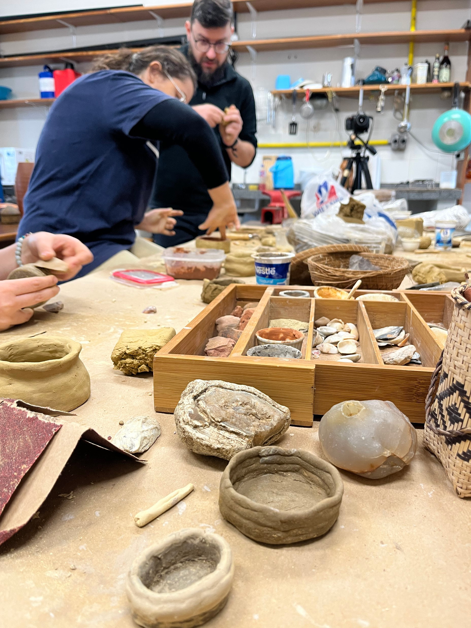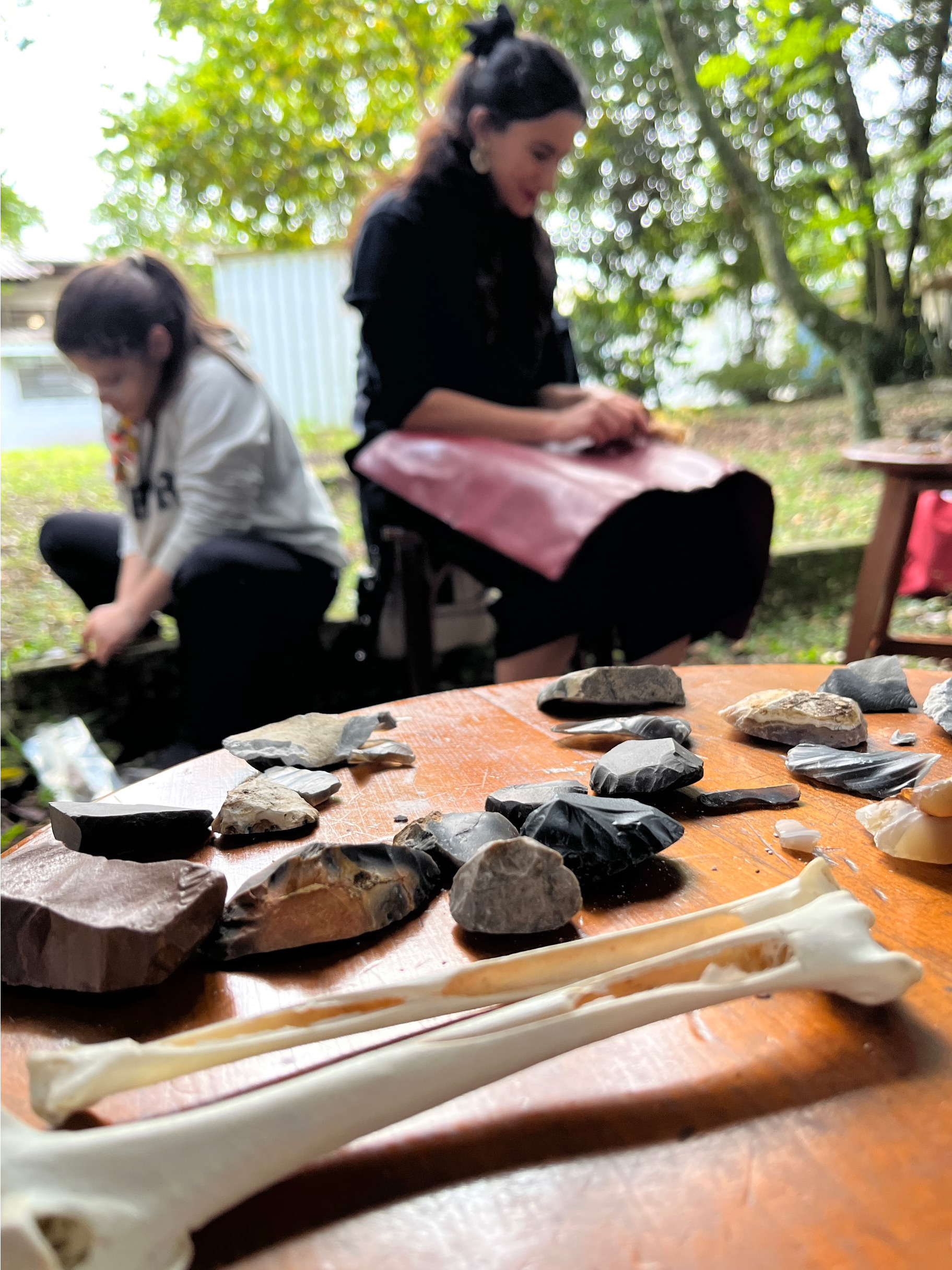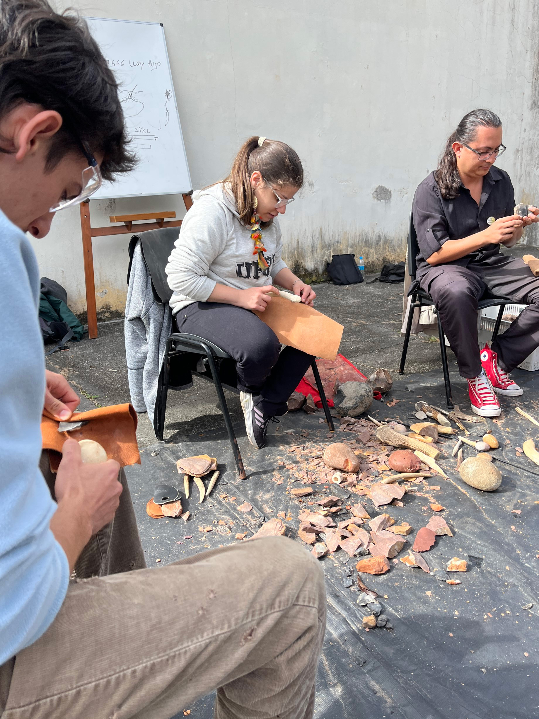 The reason for the academic sessions being held in the afternoons was because the morning program was dedicated to practical in-person workshops held in various rooms and gardens on the Campus Juvevê. There were four workshops on offer to participants: A lithics workshop run by Prof. Dr. Hugo Nami (Monday to Wednesday), a ceramics workshop run by Prof. Ana Elisa de Castro Freitas (Monday to Wednesday), a bone and antler workshop run by Dr Matilda Siebrecht (Monday to Tuesday), and an indigenous painting workshop run by Eldissandra Toscano de Souza (Wednesday).