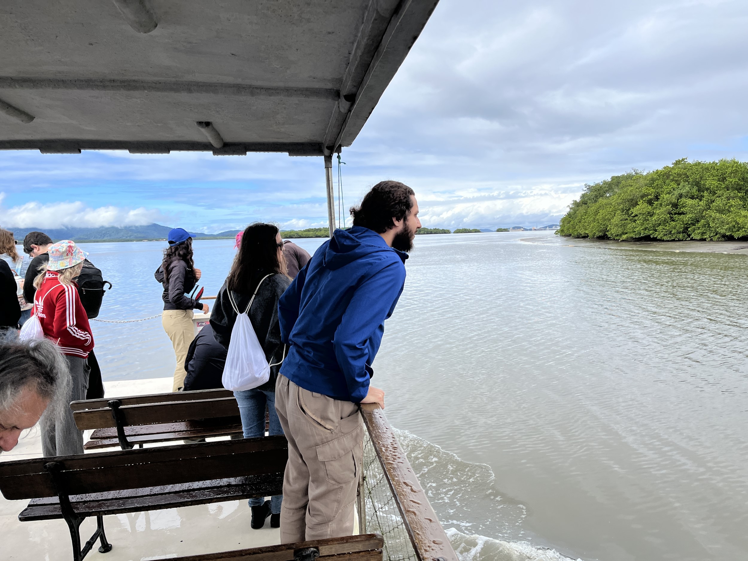 On the first day, the bus drove participants eastward through the mountains and rainforests to the coastline at Antonina. From there, they took a boat out to visit various historical sites along the coast, including the renowned Sambaqui (shell mound) at Ilha do Corisco. Unfortunately, the low water levels meant that, even with an additional loop on the journey added to the preceding tour, the boat was unable to dock at the island with the shell mound, and so participants had to admire it from the water instead. However, the views throughout the tour were beautiful, and everyone enjoyed the trip out on the water.