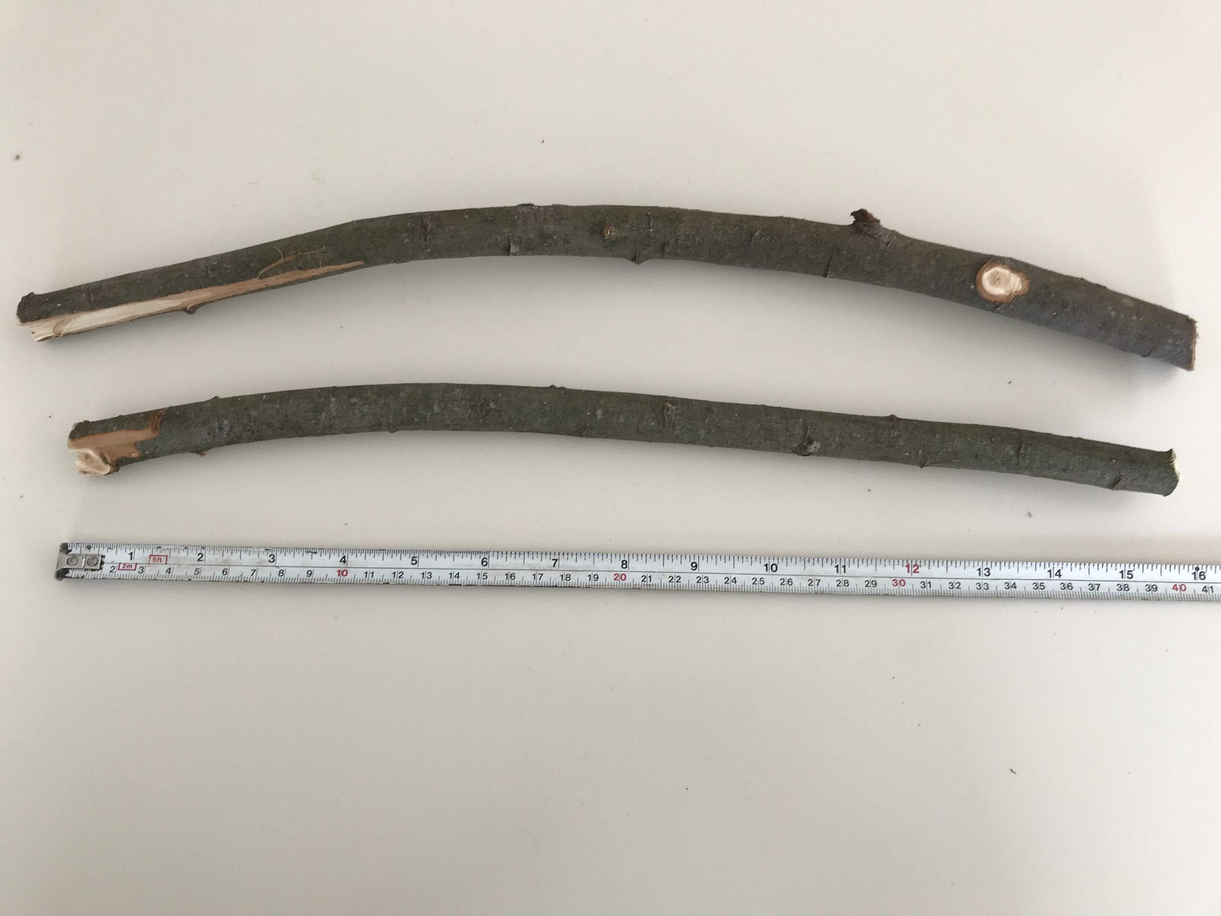 To establish the plausibility of this thesis, a scoping experiment was undertaken by the present writer. It was decided that a rough replica of a bow arm, as it was being held rigid holding a bow, could be approximated by robust twigs, wrapped in strong fabric and held in a vice grip. Two freshly cut sticks, roughly the size of the bones of the forearm, were bound individually, and then together to replicate a forearm (See Figures 6 and 7). The replica arm was then supported at one end in a bench vice. As this was intended as a scoping experiment, it was not thought necessary to reproduce known wrist guards, only to ensure that the stone replicas were at least as robust, if not more so, than know wrist guards. Six stones of various kinds, approximately the size of the wrist-guards on display in the National Museum of Ireland, were located at the mouth of a stream near Blackwater, Co. Wexford. Each, in turn, was attached to the replica arm to make an armature which would roughly replicate the wearing of a wrist-guard on the outer forearm (See Figures 8, 9 and 10).