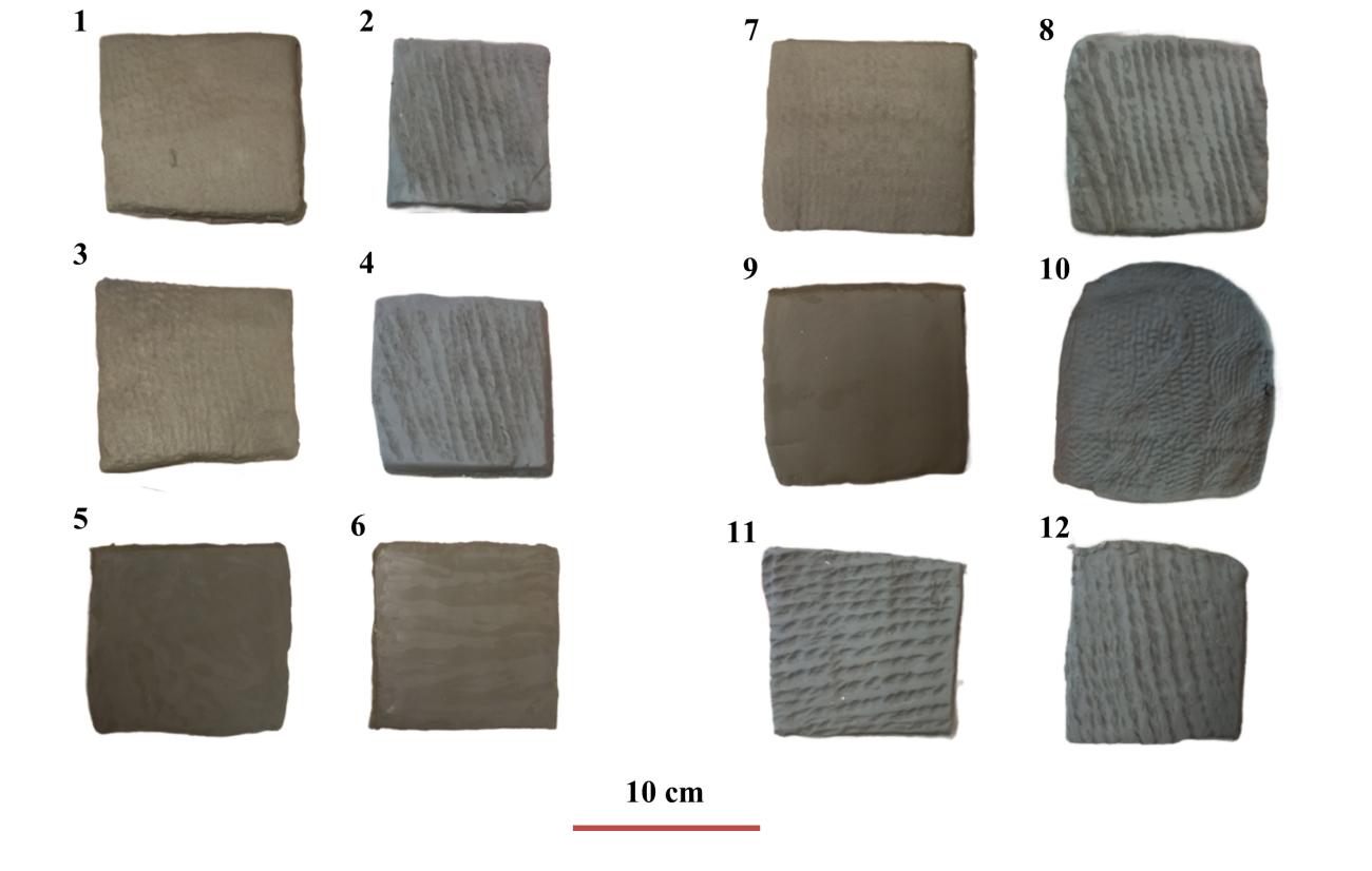 12 clay tablets (10x10x1 cm) were made and treated using a rounded piece of wood to flatten their surface (See Figure 2).