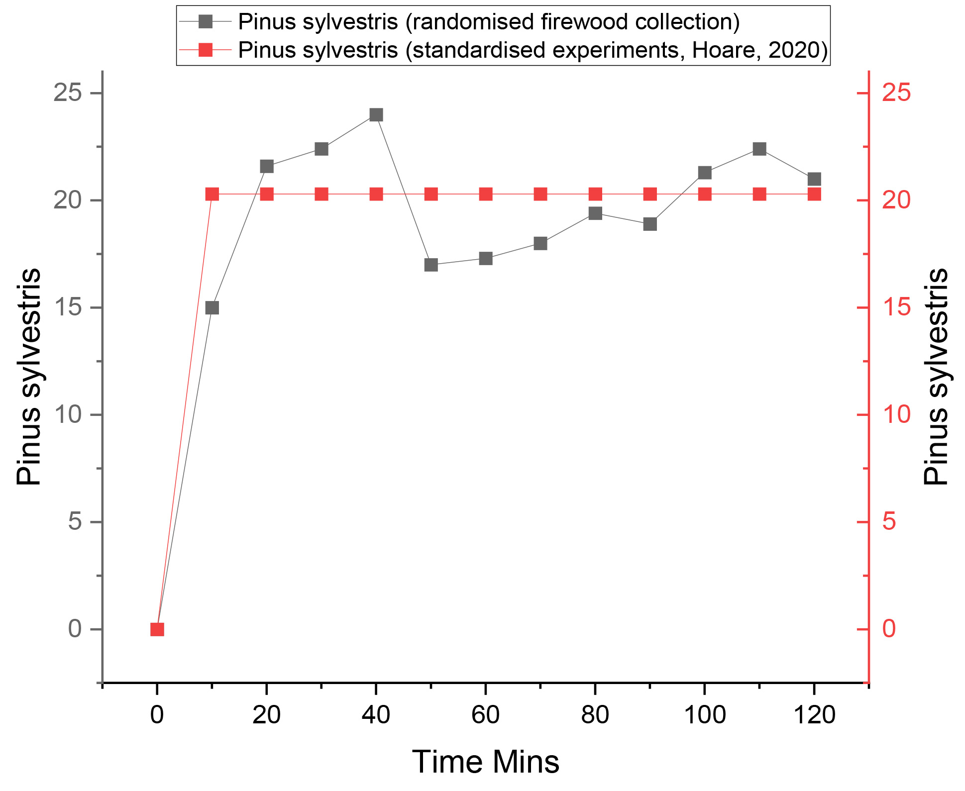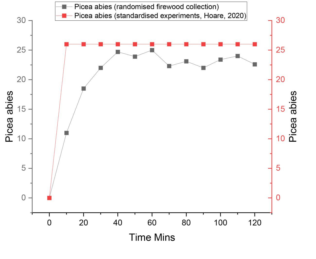 Standardised experiments are an important starting point for any experimental pyroarchaeological project; however, should always be correlated with data that is representative of a specific activity in situations where factors have been identified as significant in potentially influencing results. In this regard, Robledo, et al. (2025), noted the importance of examining how variation between different wood states could influence radiative heat output and smoke emission. These authors demonstrate how both temperature and smoke emissions from experimental fires, using the wood of P. sylvestris, can vary according to the state of the firewood, whether decayed or semi-decayed. Our results also demonstrate how variation in both the state of the firewood and diameter size can influence illuminance of different wood species relevant to the study of firewood collection strategies in the Palaeolithic. This work provides more realistic data in terms of how light could have been experienced and utilised in both open air, caves, and rock shelters, preserving the trace remains of hearths such as charcoals for species-level identification.