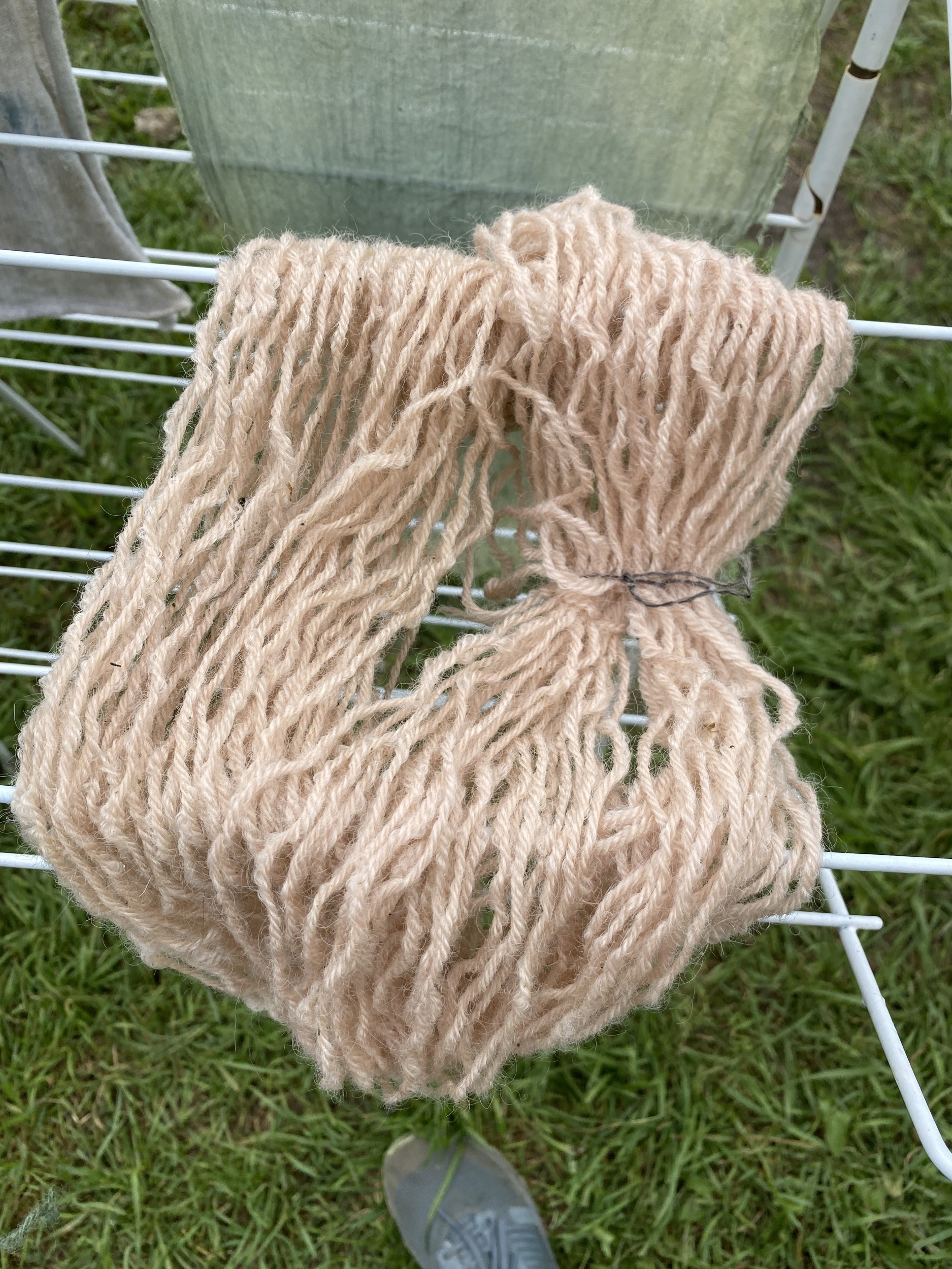 - Remove and rinse the yarn. The yarn will get pinker as it dries.