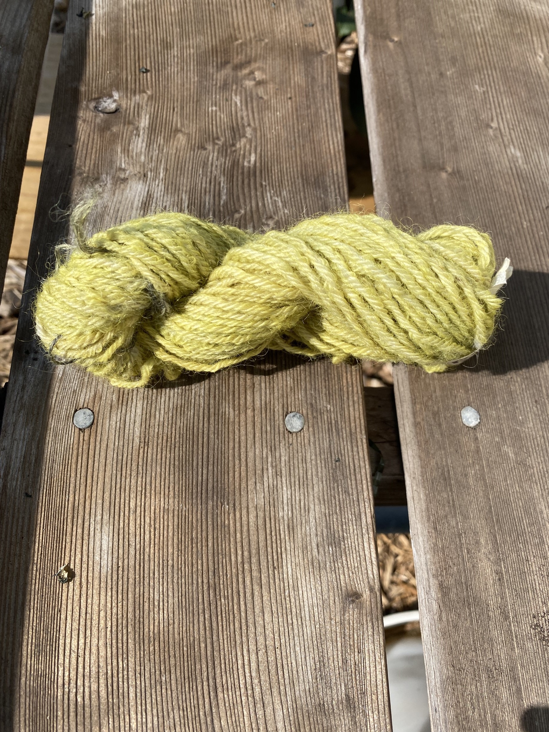 This experiment did however provide valuable information. It indicates that woad balls were an essential step to the success of these medieval vats, as this was the difference between no change in the colour of the yarn and a change towards the desired colour, despite its temporary nature. It also suggests that the medieval method could work and be replicable.