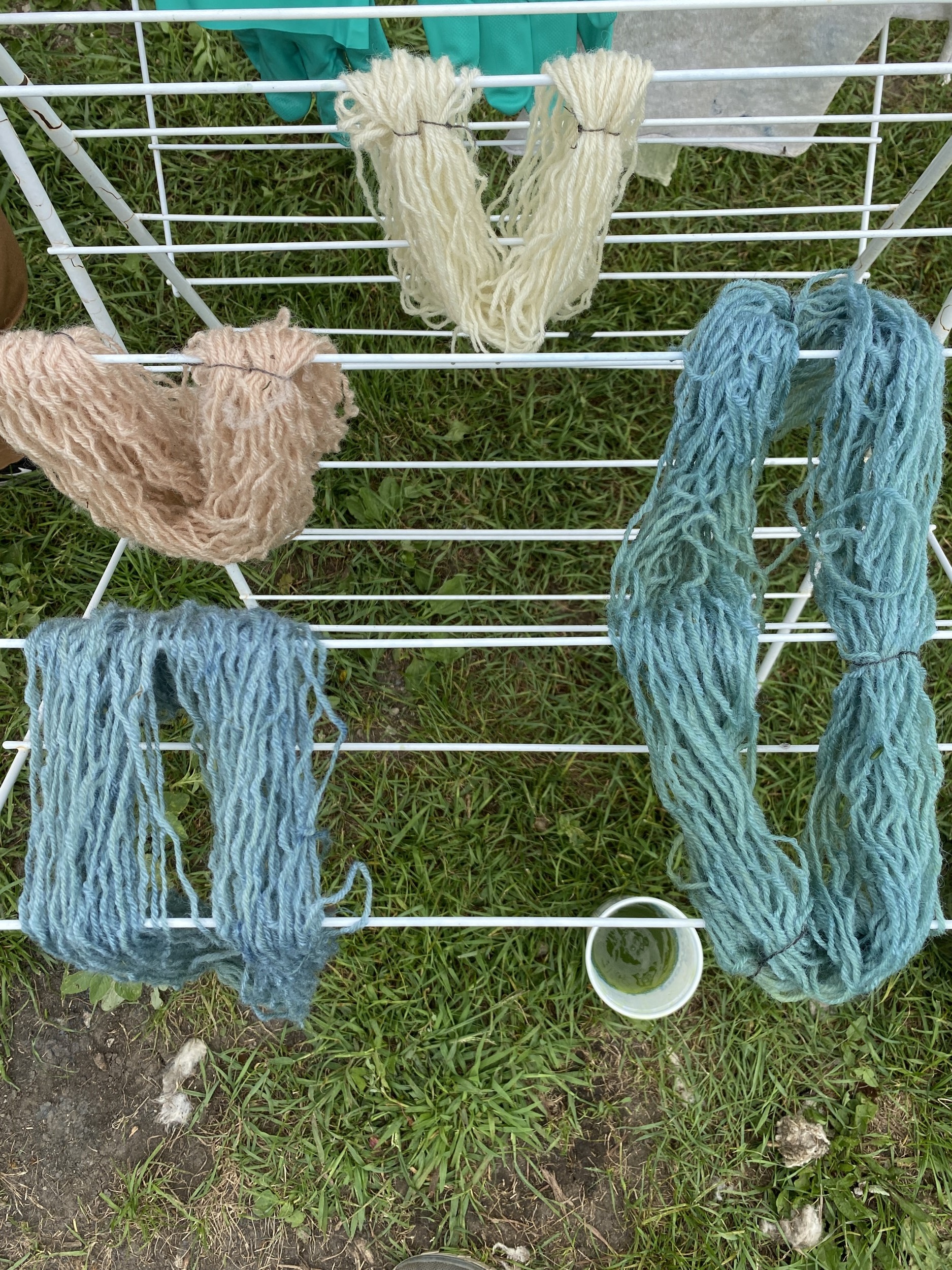Our yarn sample turned green and then oxidized to a deep blue colour, meaning that this vat was a success! (See Figure 10)