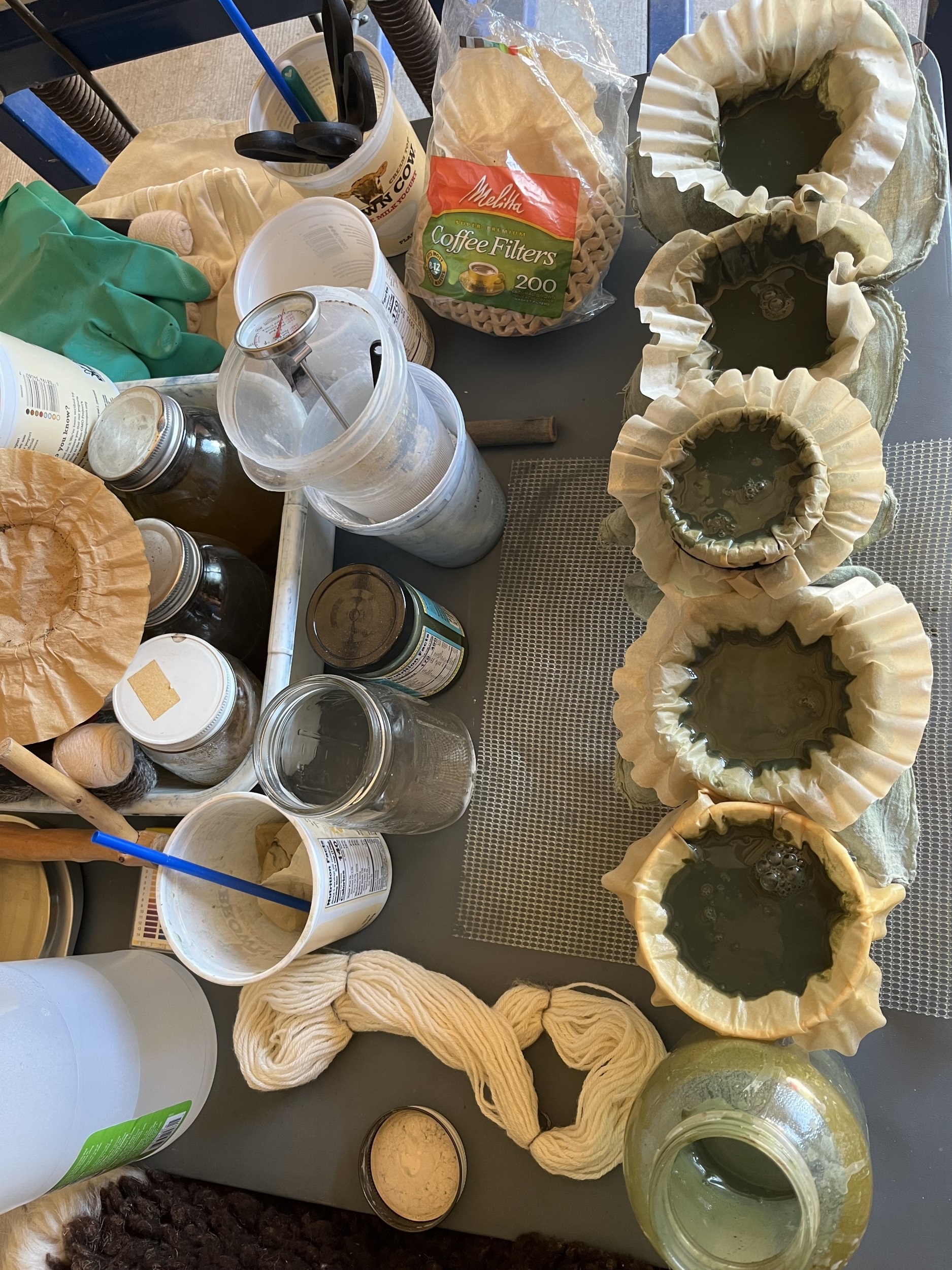 - After 30 hours dip yarn into the vat and hold it under the surface for 5 minutes.
