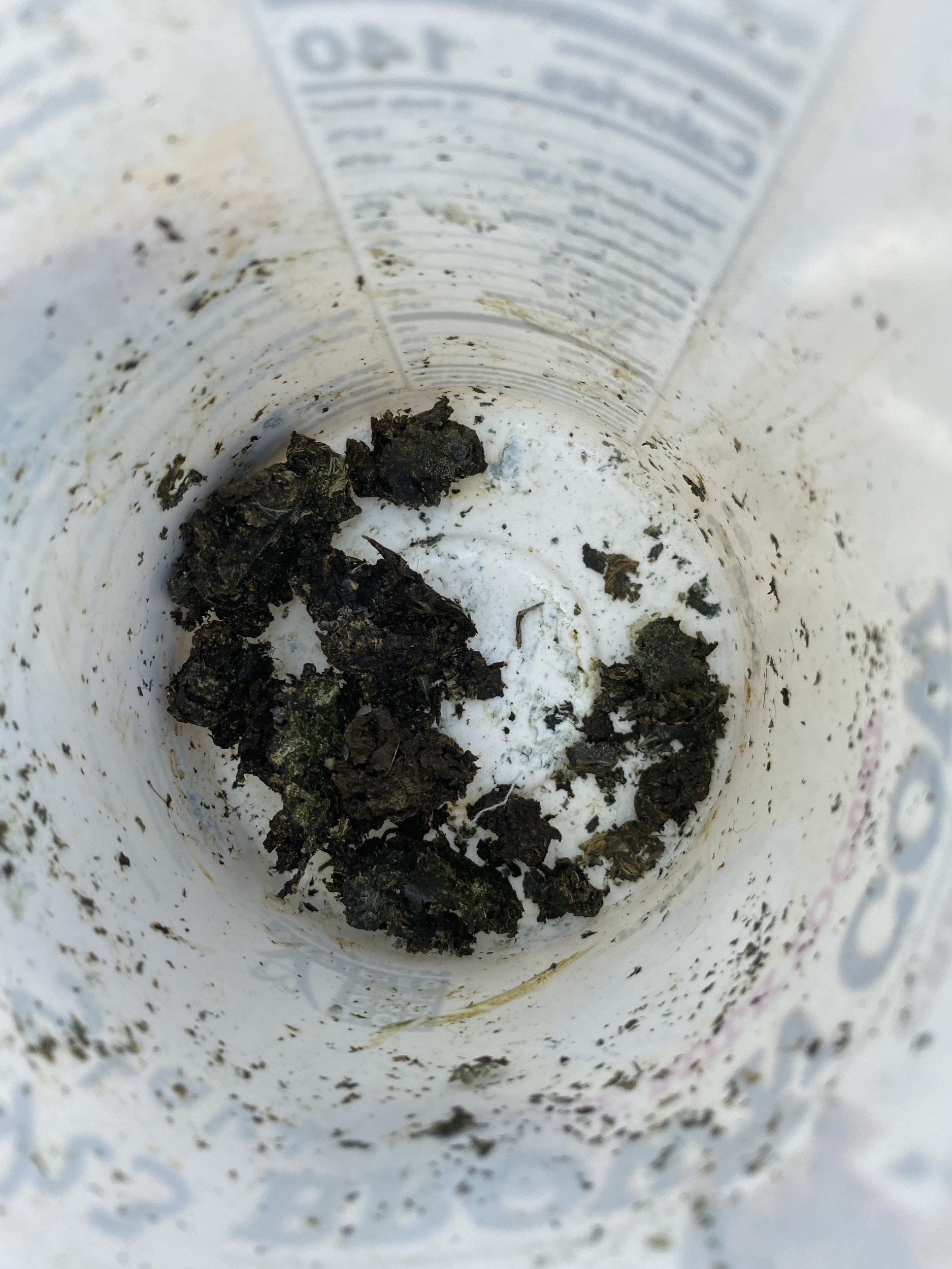In our experiments, since we were operating with a smaller amount of woad, we wet the crushed woad balls in old yogurt containers covered with butter cloth. This set up was our attempt to replicate the environment of a woad floor on a smaller scale; the lightly covered container served similar purpose as a shed in that it kept the fermenting woad contained, trapped the heat created from decomposition, and kept it from being disturbed by large pests. Having multiple containers also allowed us to have a few different attempts fermenting at the same time. We placed the labelled yogurt containers outside in a warm corner of the garden (See Figure 5). We then rewet and turned the woad in the containers every day we were at the farm, as woad on woad floors would get rewet and turned regularly. We fermented the woad balls for fifteen days before attempting to construct our first medieval vats (See Figure 6).