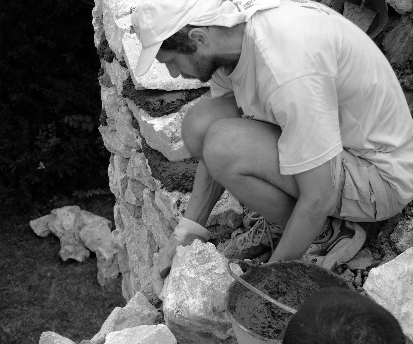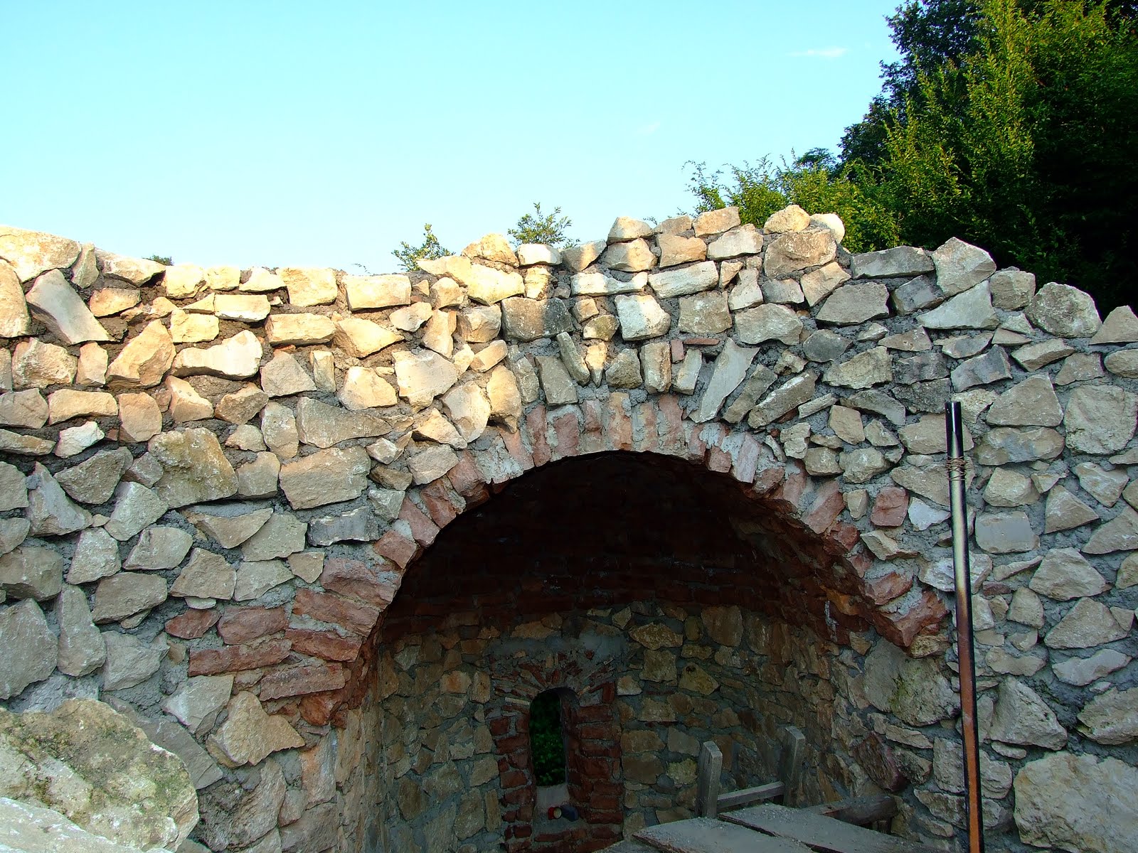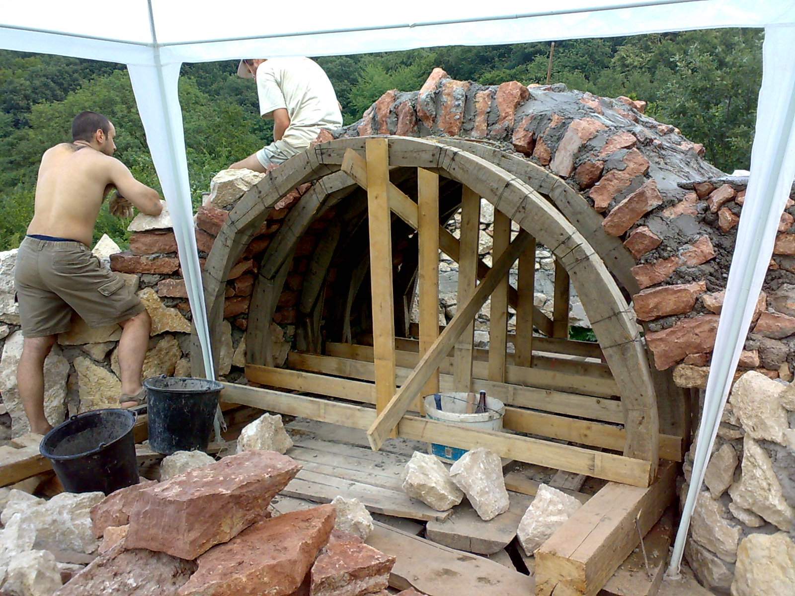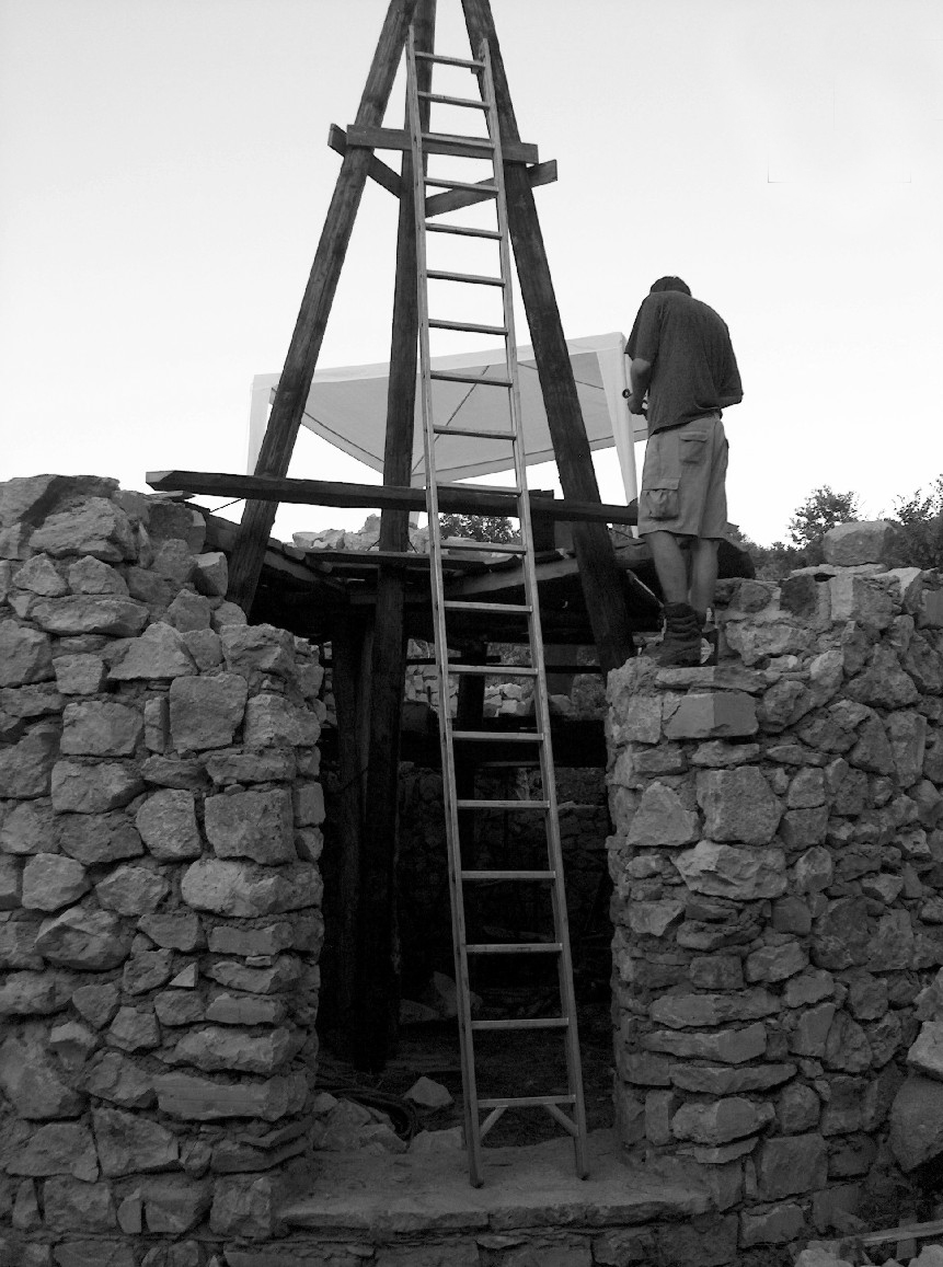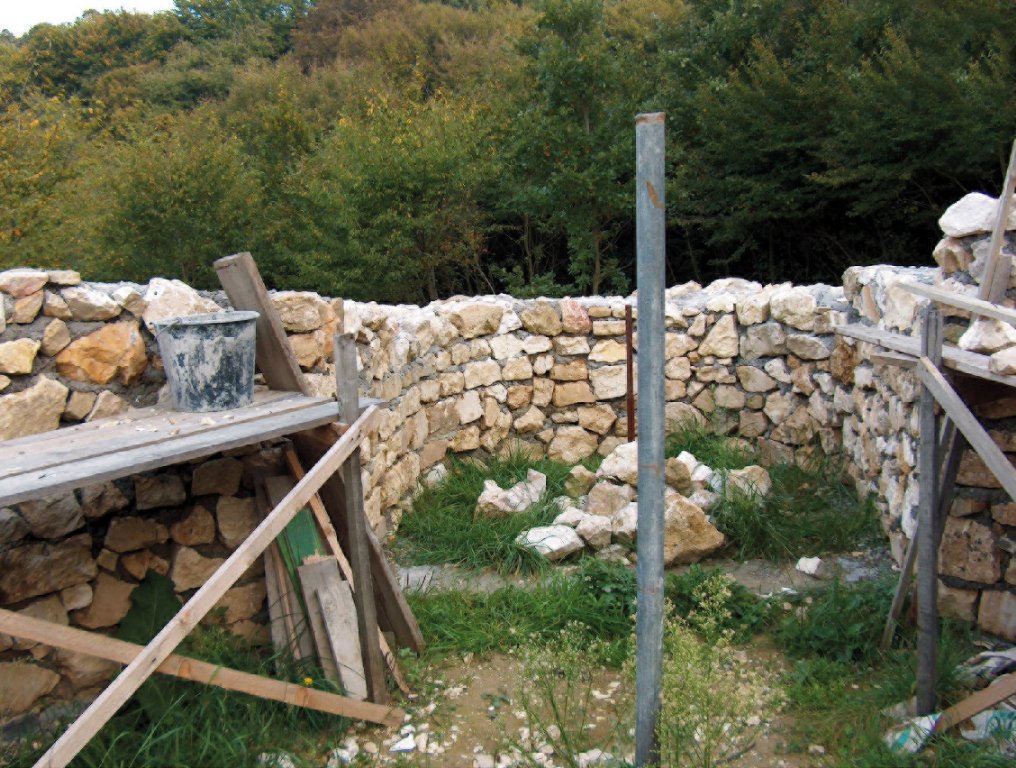 Here, a medieval rotunda reconstruction is presented by contemporary building technology. The rough stone building technology on an experimental archaeological project is demonstrated.