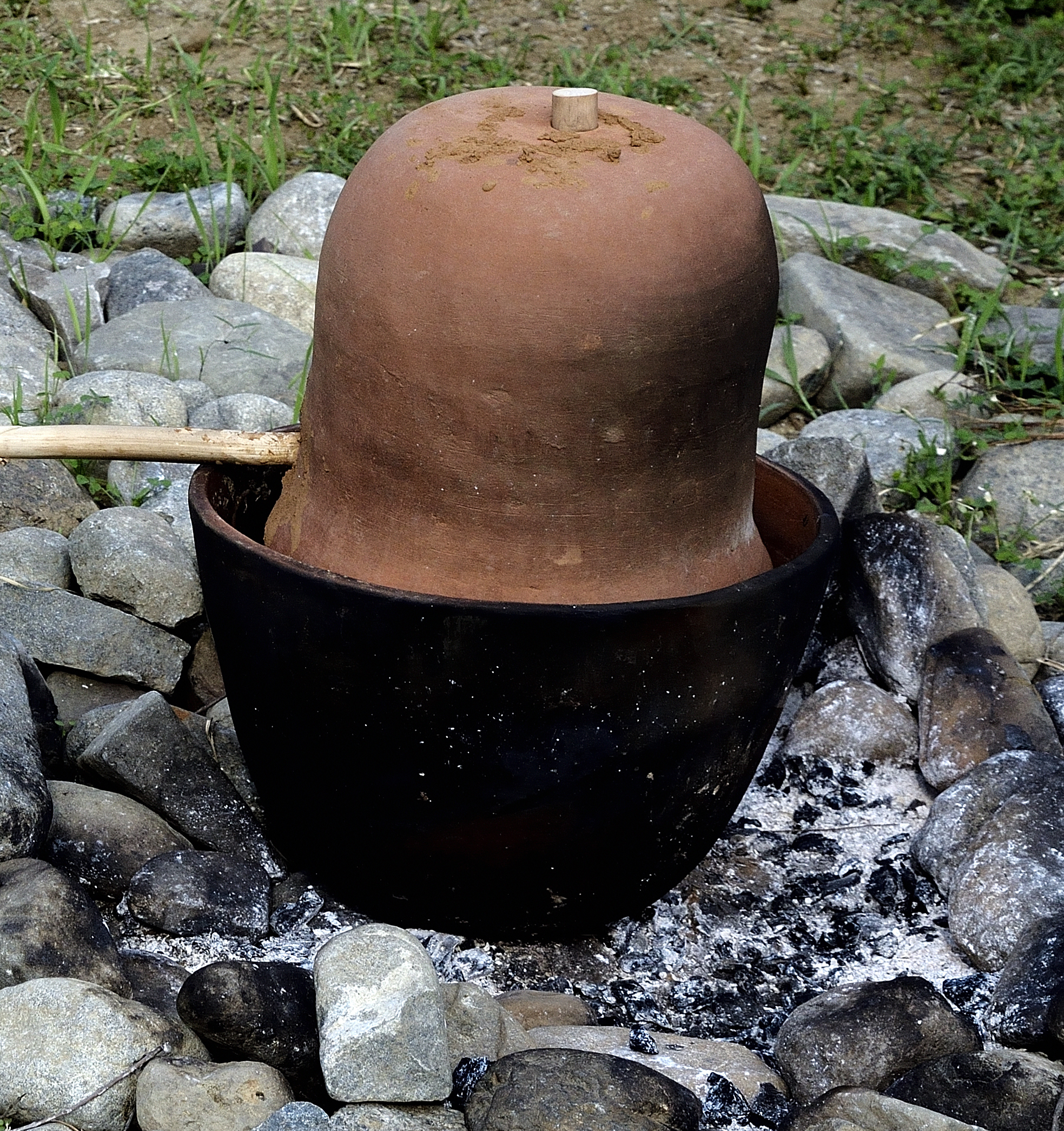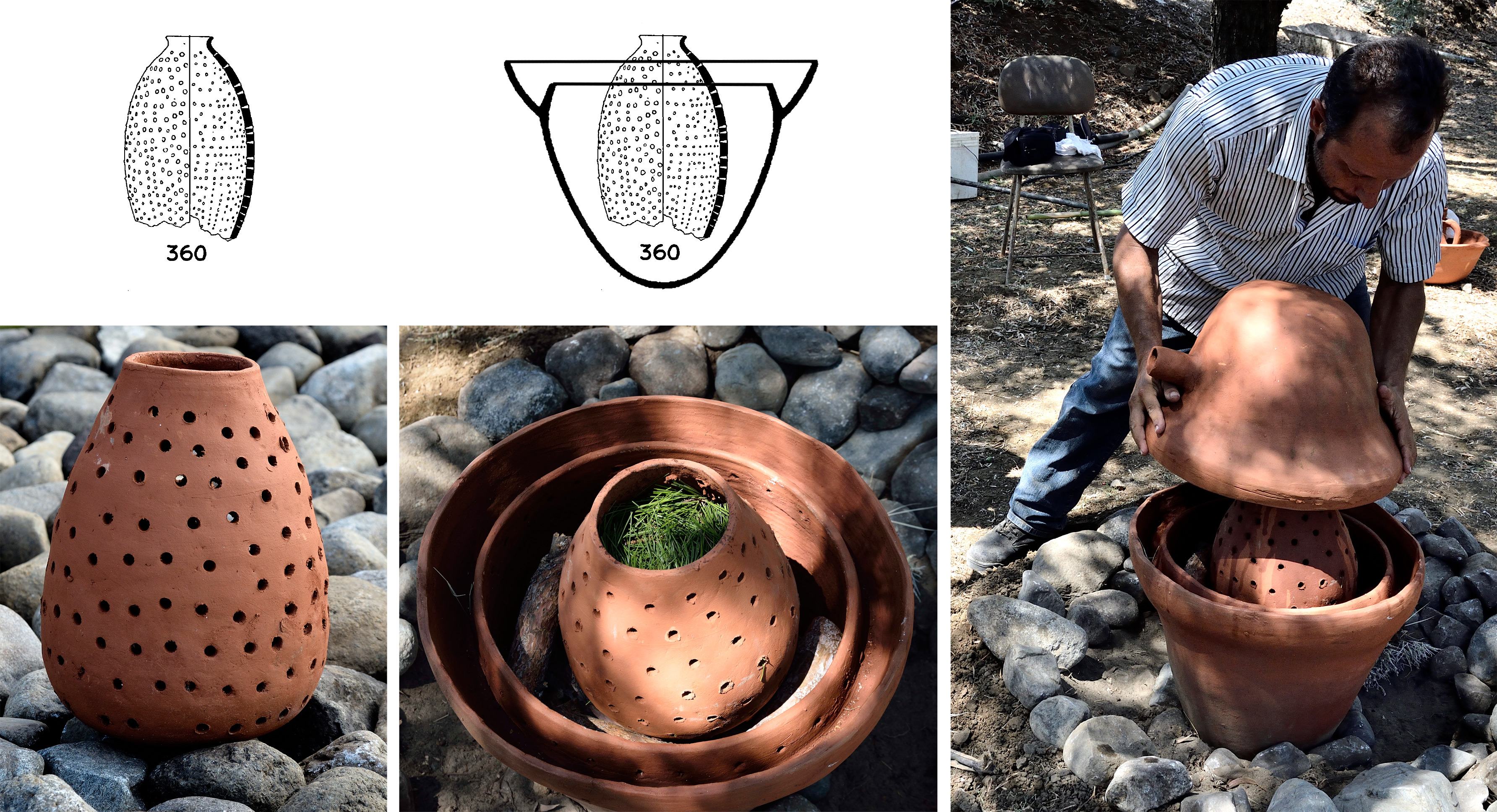 The experimental process began with the reproduction of the pottery and this operation allowed us to observe the details and the difficulties faced to make them without the use of the lathe with adequate characteristics to withstand a temperature suitable for boiling liquids. The next phase concerned the assembly of the vessels that could form an apparatus by moving the hypothesis from theory to reality within the limits of the compatible dimensions of the individual objects. This operation allowed us to understand how important some additional elements were, such as the internal filters, which are accessories present in modern distillers, and the quantity of vegetables and liquid they could contain.