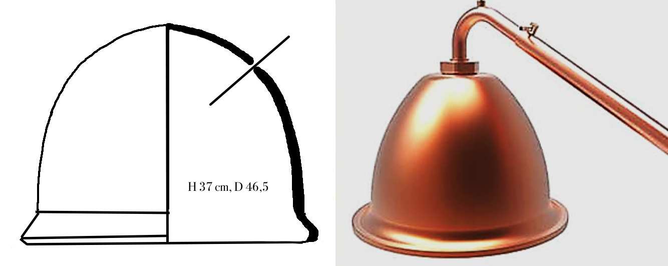 We also realized how important the domed shape of the upper part of the apparatus was, that is the antagonist essential for the distillation process, as it acts as an expansion vessel to collect the steam.